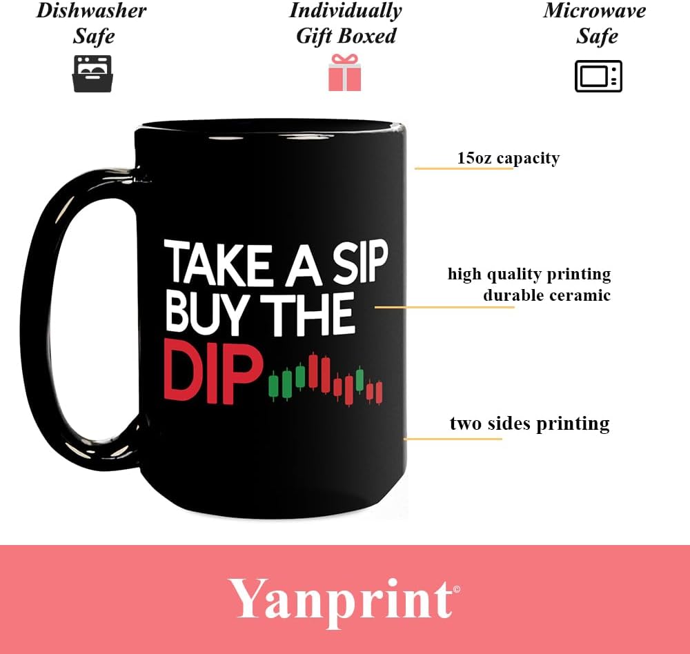 Yanprint 15oz stock trade coffee mug gifts for trader brokers,Take A Sip Buy The Dip Funny Investment Gift for Fund Financial Adviser Investor