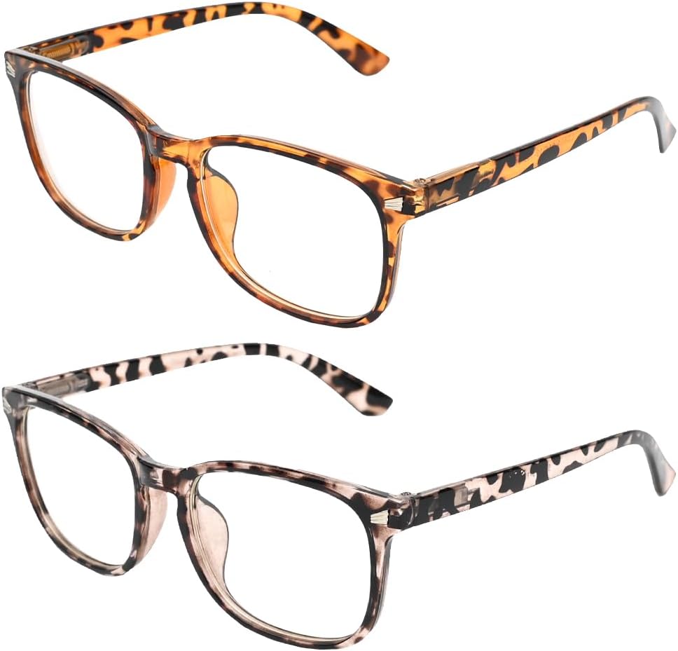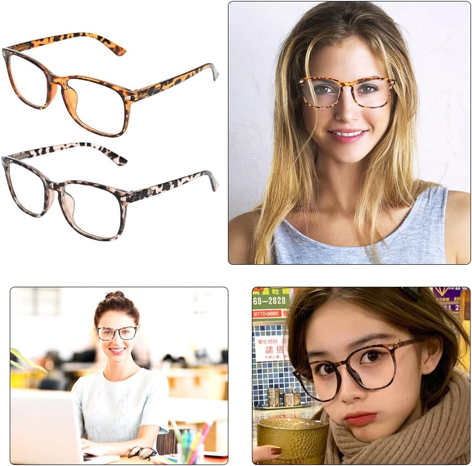 2 Pieces Blue Light Blocking Glasses, Clear Eye Glasses Fashion Blue Screen Glasses Computer Clear Lens Glasses Blue Light Filter Glasses for Women Men Anti Glare Migraine