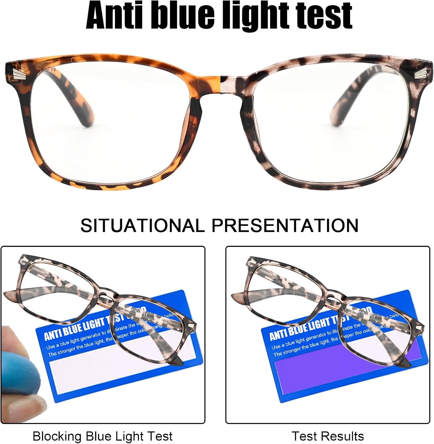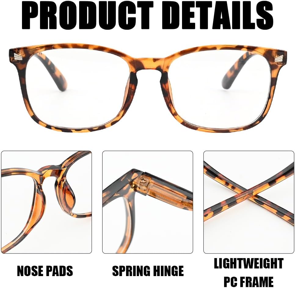 The glasses feature clear lenses that filter blue light while maintaining clarity for everyday use.