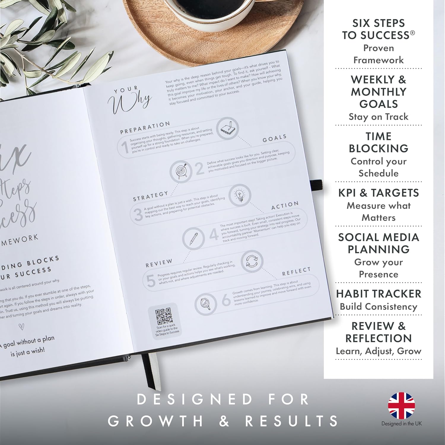 ACHIEVE YOUR GOALS – With the six-step success method, weekly/monthly goal setting, and detailed reflection sections, this planner serves as your dedicated companion, guiding you towards achieving your goals.