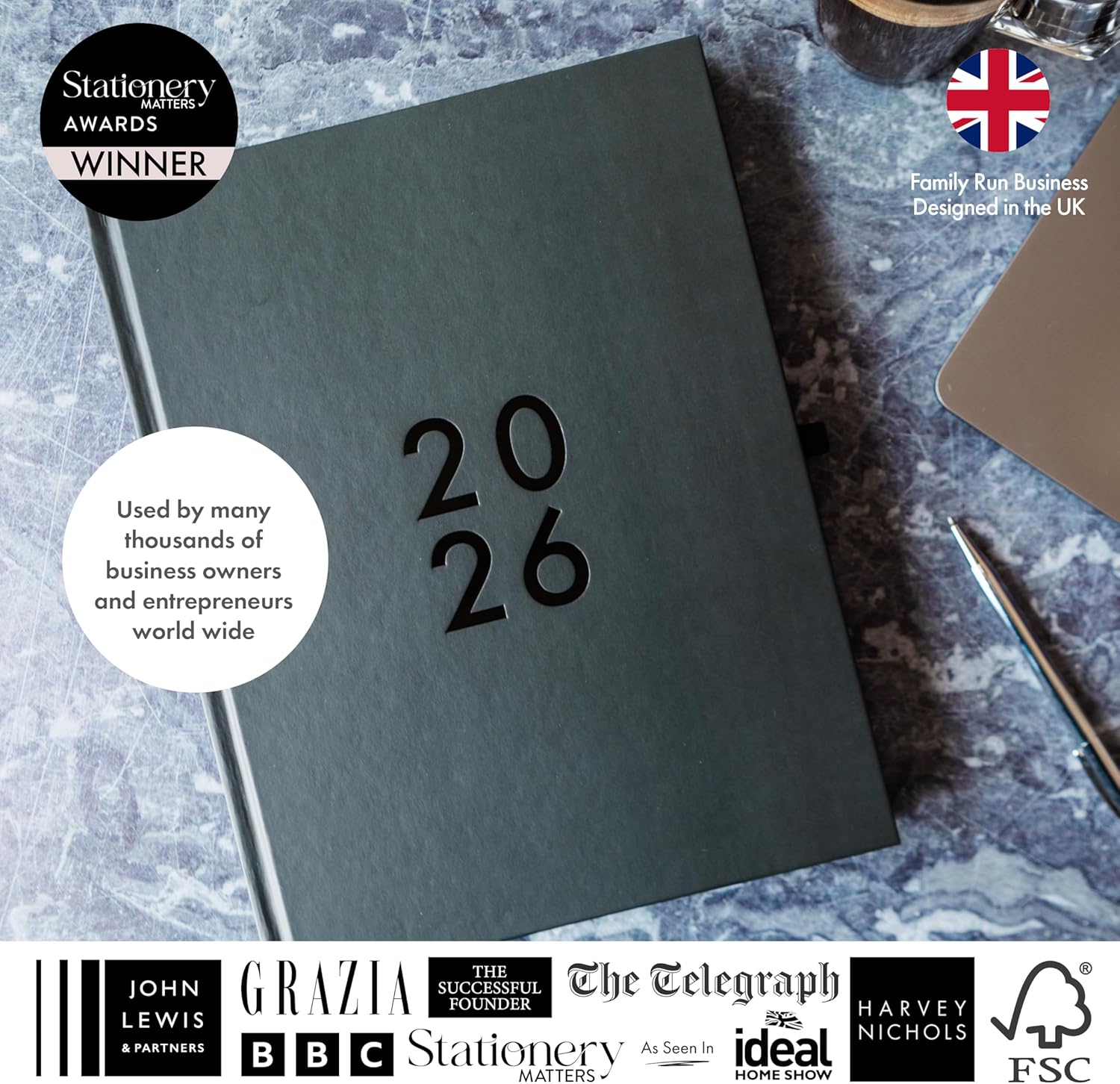 Dated Jan–Dec 2026. You get a clear week-to-view diary with monthly overview pages for planning campaigns, events and life at a glance.