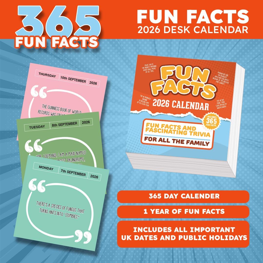 2026 Daily Fun Facts Desk Calendar – Peel-Off Trivia Each Day for Children & Adults – Birthday Gifts, Father’s Day Present Idea & Fun Gift for the Family – Includes UK Dates, Events, & Gift Box