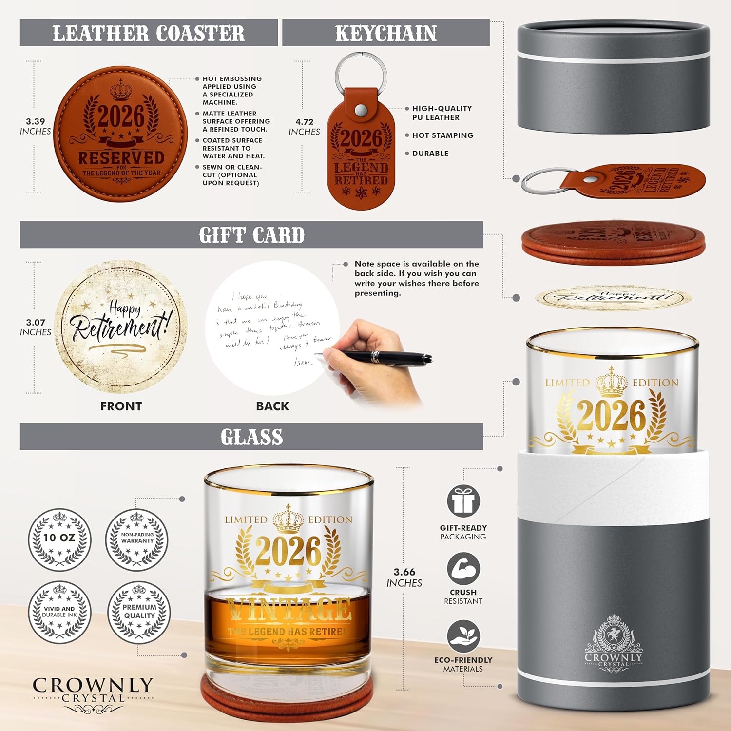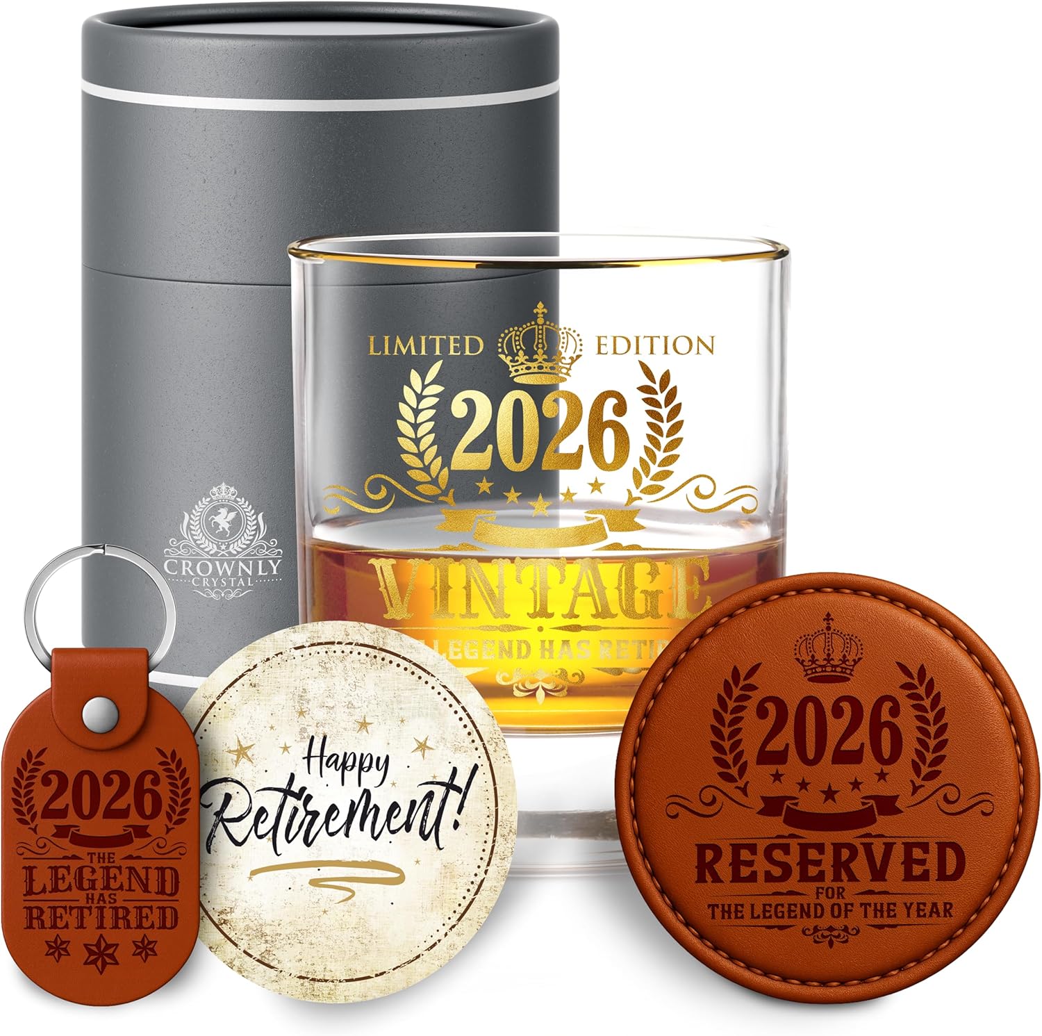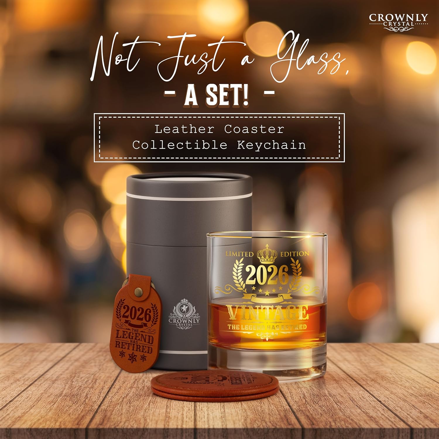 PRINT QUALITY: Crystal whiskey glass with words “LIMITED EDITION 2026 VINTAGE THE LEGEND HAS RETIRED” will never fade or lose, Unlike others, the text is printed on the glass appearance which is easy to wash out. Ours will be kept long time and used for many years in daily life. To maintain words bright, it is better to wash by hands.