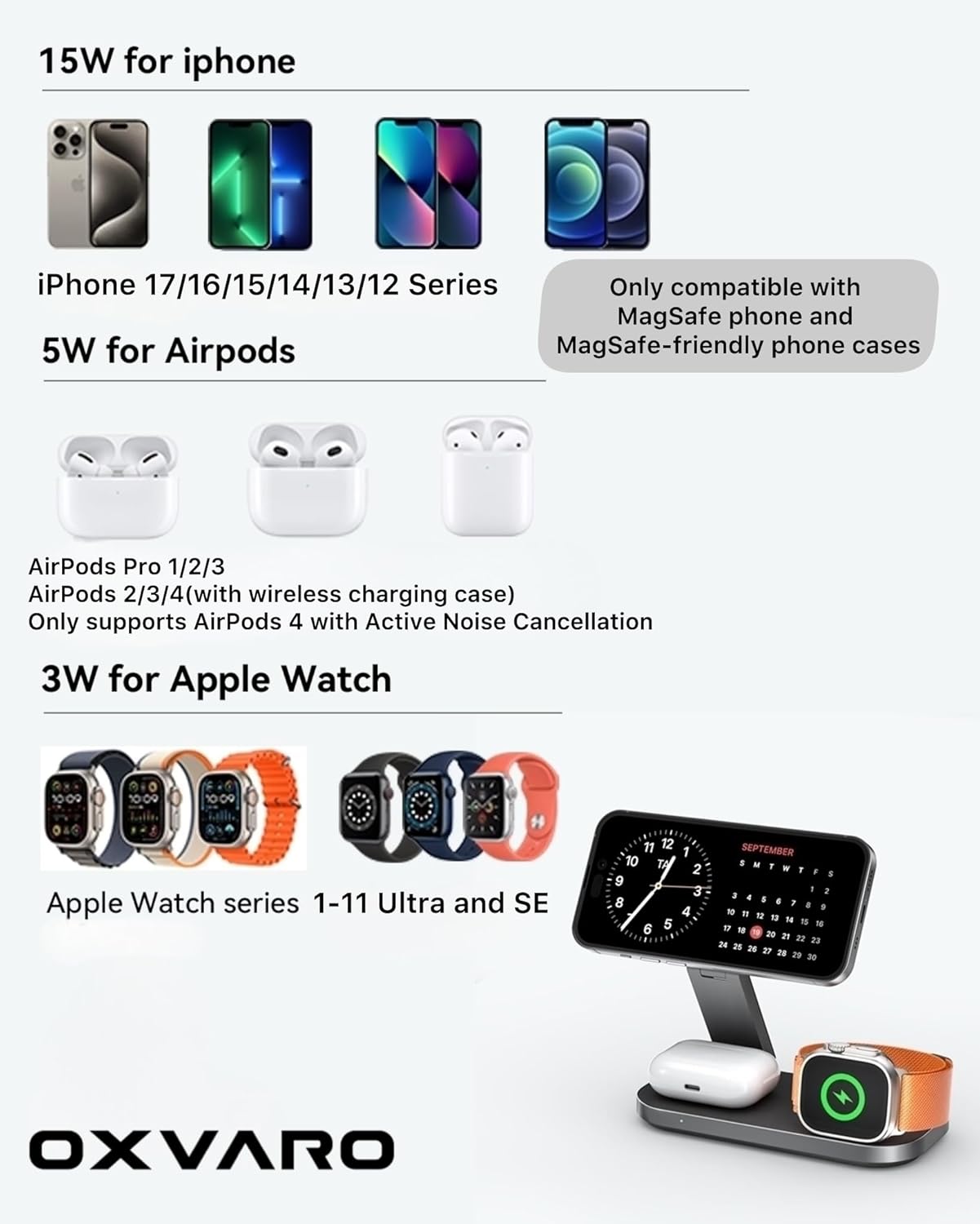 Fast & Safe Wireless Power – Intelligent protection ensures stable charging with no overheating. This 3 in 1 charger works as a MagSafe charging stand and Apple wireless charging station, delivering fast charging for home or travel.