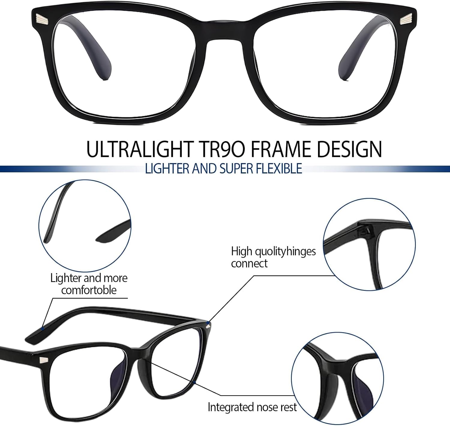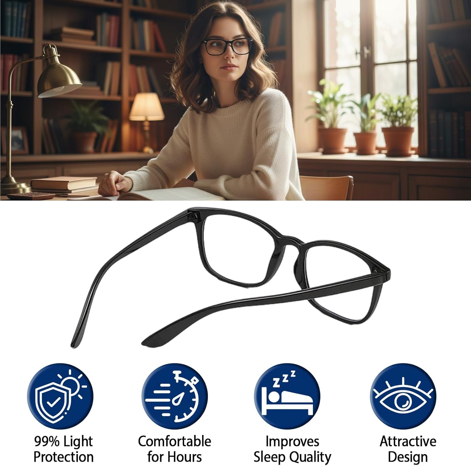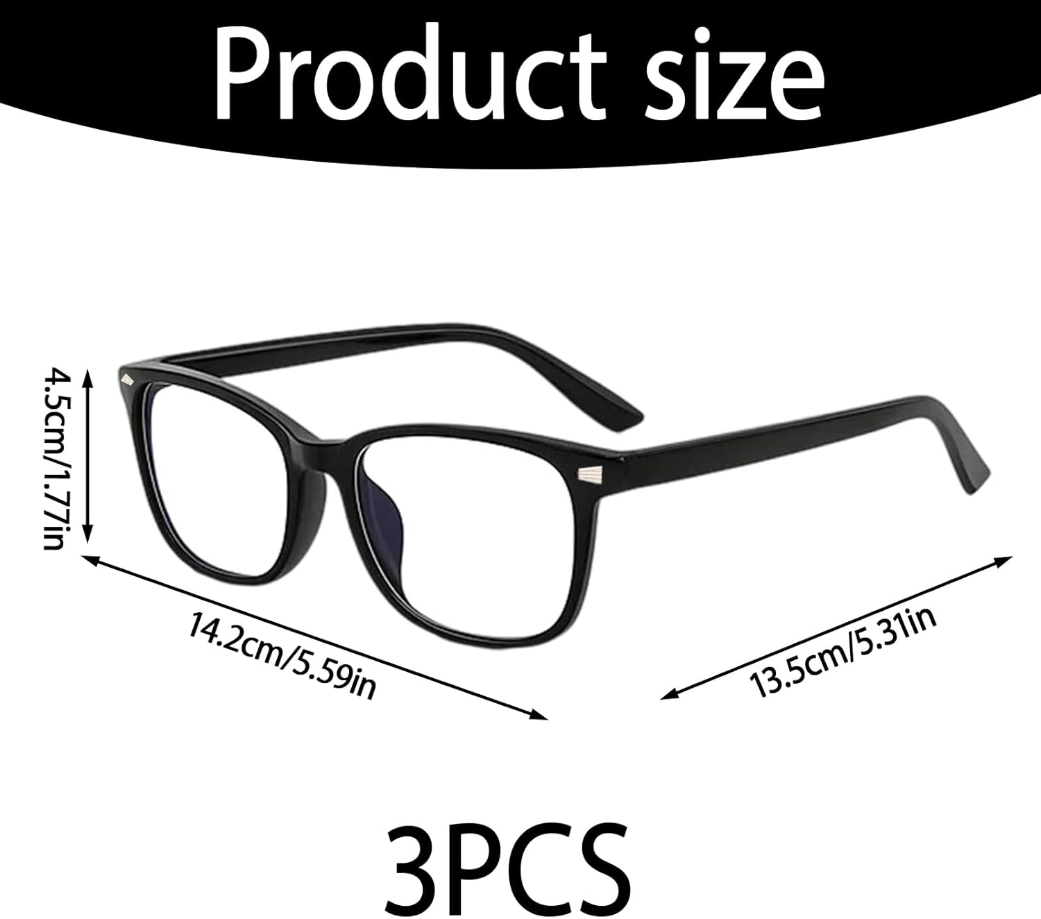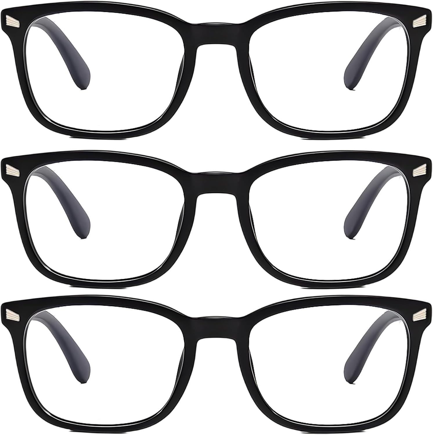 3 Pack Blue Light Glasses for Women, Clear Lens Computer Glasses, Anti Eye Strain Glasses for Office Work and Gaming, Lightweight Frame (14.2×13.5×4.5cm).Blue Light Protection: These blue light glasses help reduce eye strain from digital screens; The clear lenses block harmful blue light while maintaining true color vision; Ideal for office work, gaming, and extended screen time.Stylish Design: The clear glasses sleek black frame offers a modern and fashionable look; Suitable for both professional and casual settings; Lightweight construction ensures comfort during long wear.Multi-Pack Value:The blue light glasses women includes 3 pairs of blue light blocking glasses; Convenient for keeping at home, office, or travel; Share with family or have backups ready.Comfortable Fit: The clear glasses are designed for all-day comfort; Balanced weight distribution reduces pressure on nose and ears; Suitable for various face shapes.Digital Lifestyle Essential: The bluelight glasses womens help minimize eye fatigue during computer work; Supports better focus during gaming sessions; A practical accessory for frequent digital device users