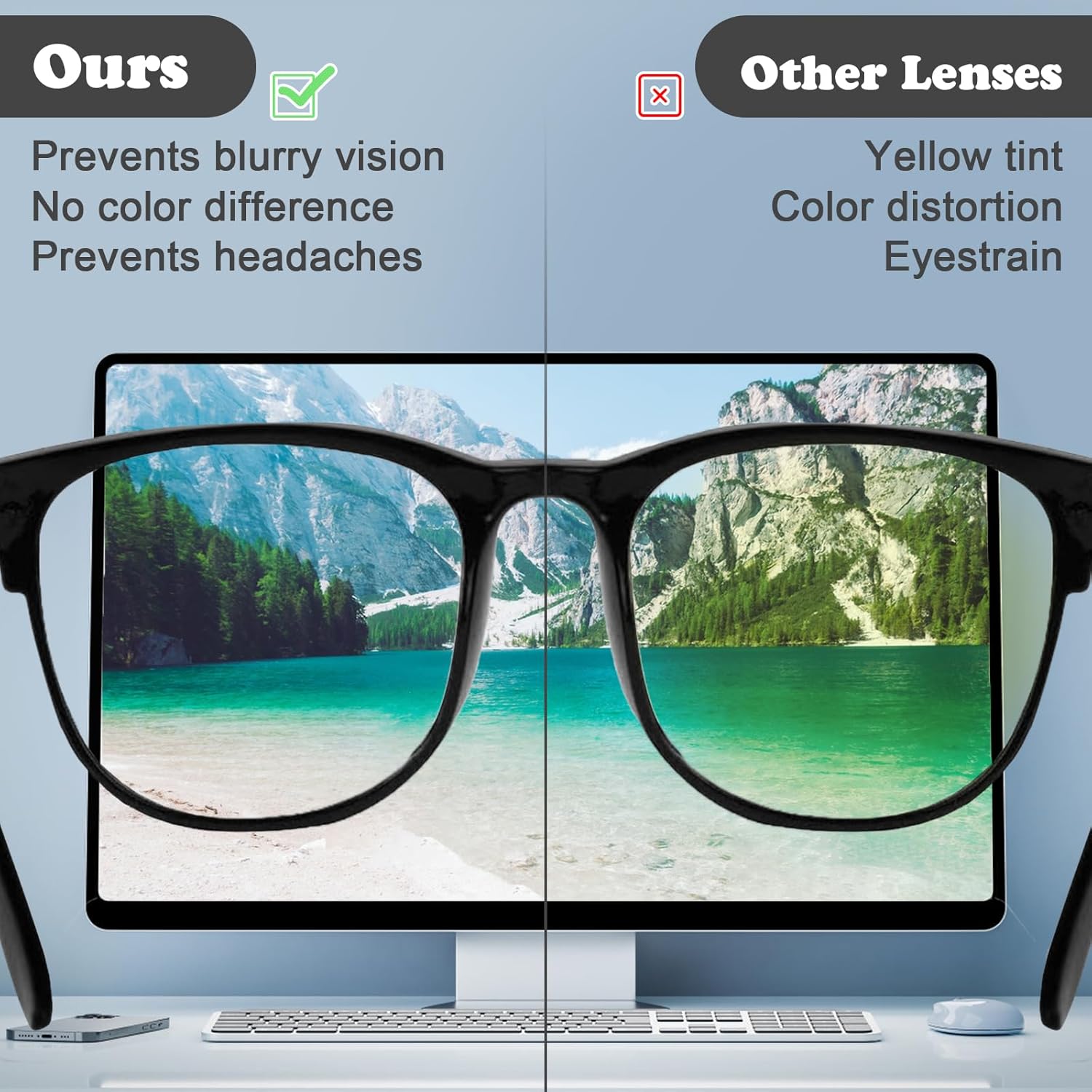 Our blue light glasses effectively filter out blue light from screens, reducing eye strain, dryness and fatigue. They offer a comfortable fit and are designed with style in mind, making them perfect who want to protect their eyes without compromising on fashion.