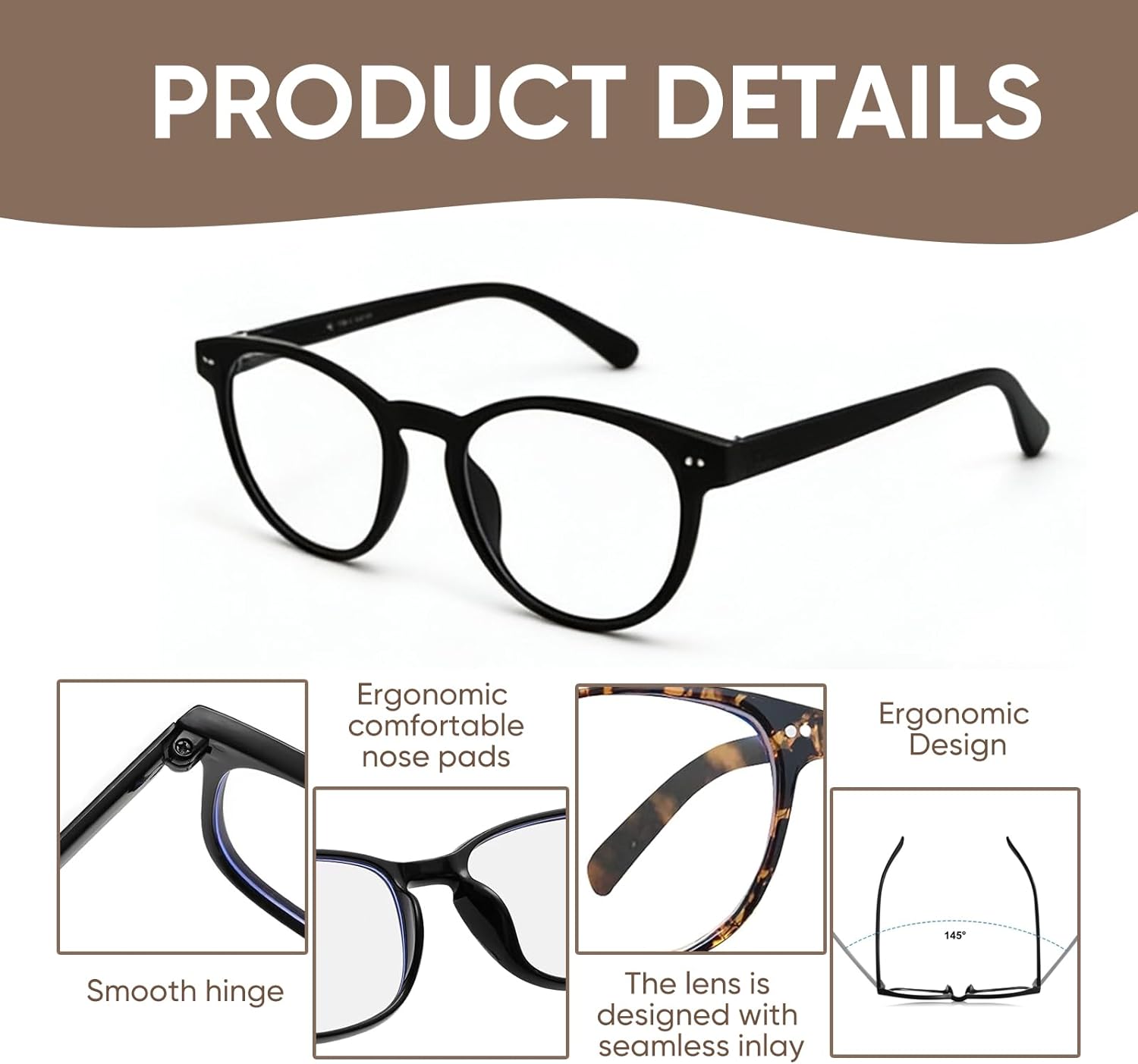 These blue light blocking glasses are designed to make screen time more comfortable whether you are working, studying or relaxing. The lenses filter high energy blue light from digital devices within the 380 to 410 nm range, helping ease discomfort commonly experienced during extended viewing sessions. The clear, non magnified lenses maintain true visibility while helping reduce glare for a more comfortable visual experience.