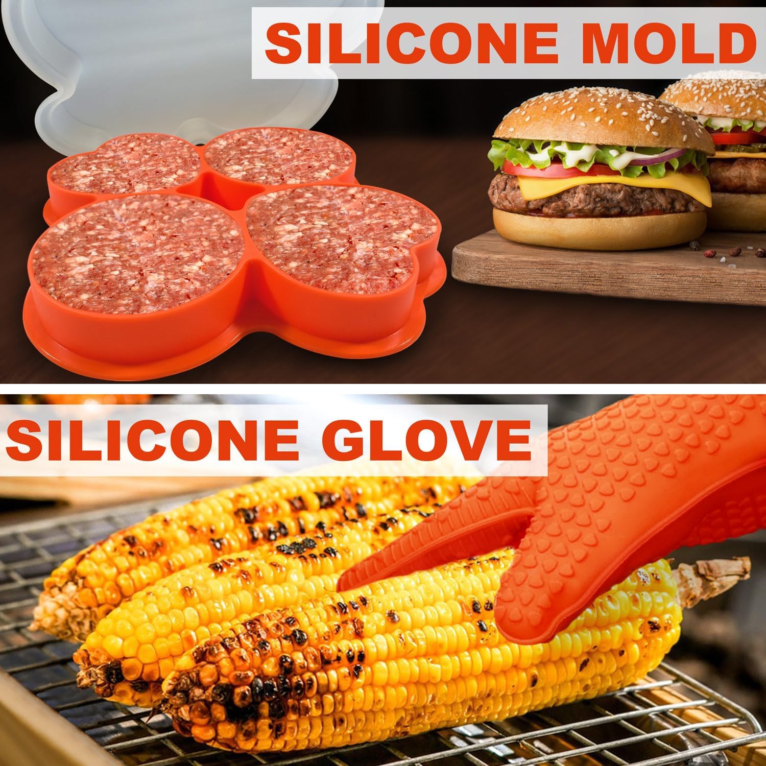 Unique Pairing Grill Utensils Set – Our 30pcs barbecue set is complemented by food-grade silicone burger meat molds that are not commonly found in other bbq sets. These silicone hamburger molds allow you to create delicious burger patties while enjoying your barbecue gatherings with friends and family