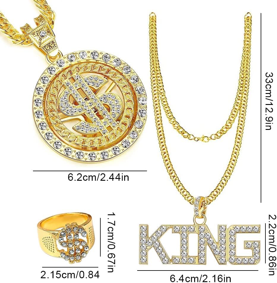 The hip hop fake gold Dollar sign chain perimeter:43cm/16.9 inch, dollar sign is about 6.2cm/ 2.44inch;