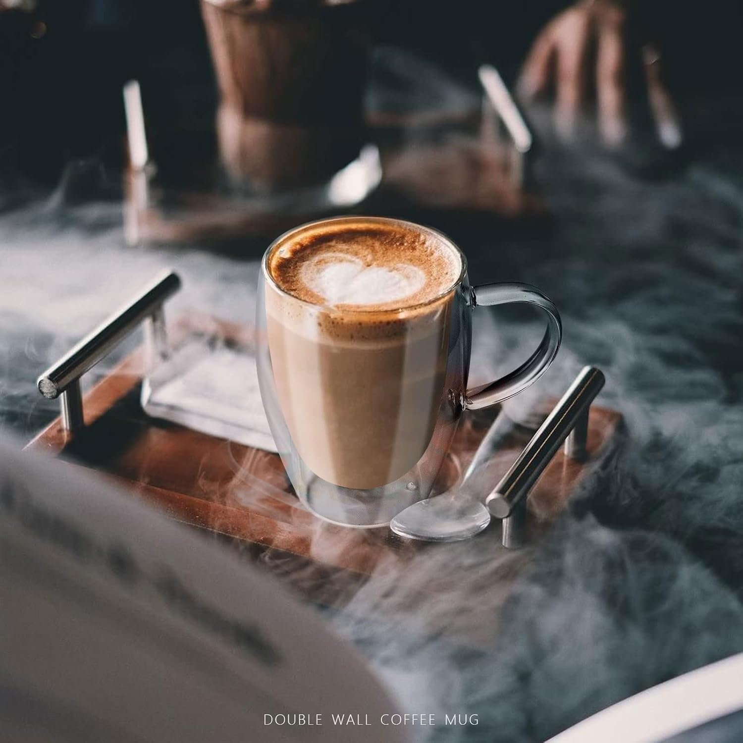 【Dishwasher safety】This cappuccino coffee cup is not only practical, but also makes cleaning simple and efficient. High borosilicate glass material is sturdy and resistant to high temperatures, and can be directly placed in a dishwasher for cleaning. Even after being washed by high-temperature water flow, it remains crystal clear and transparent, saving time and effort. If you are used to hand washing, rinse with water and it will be clean. The smooth glass wall will not leave any stains or odors, maintaining the pure taste of each use.