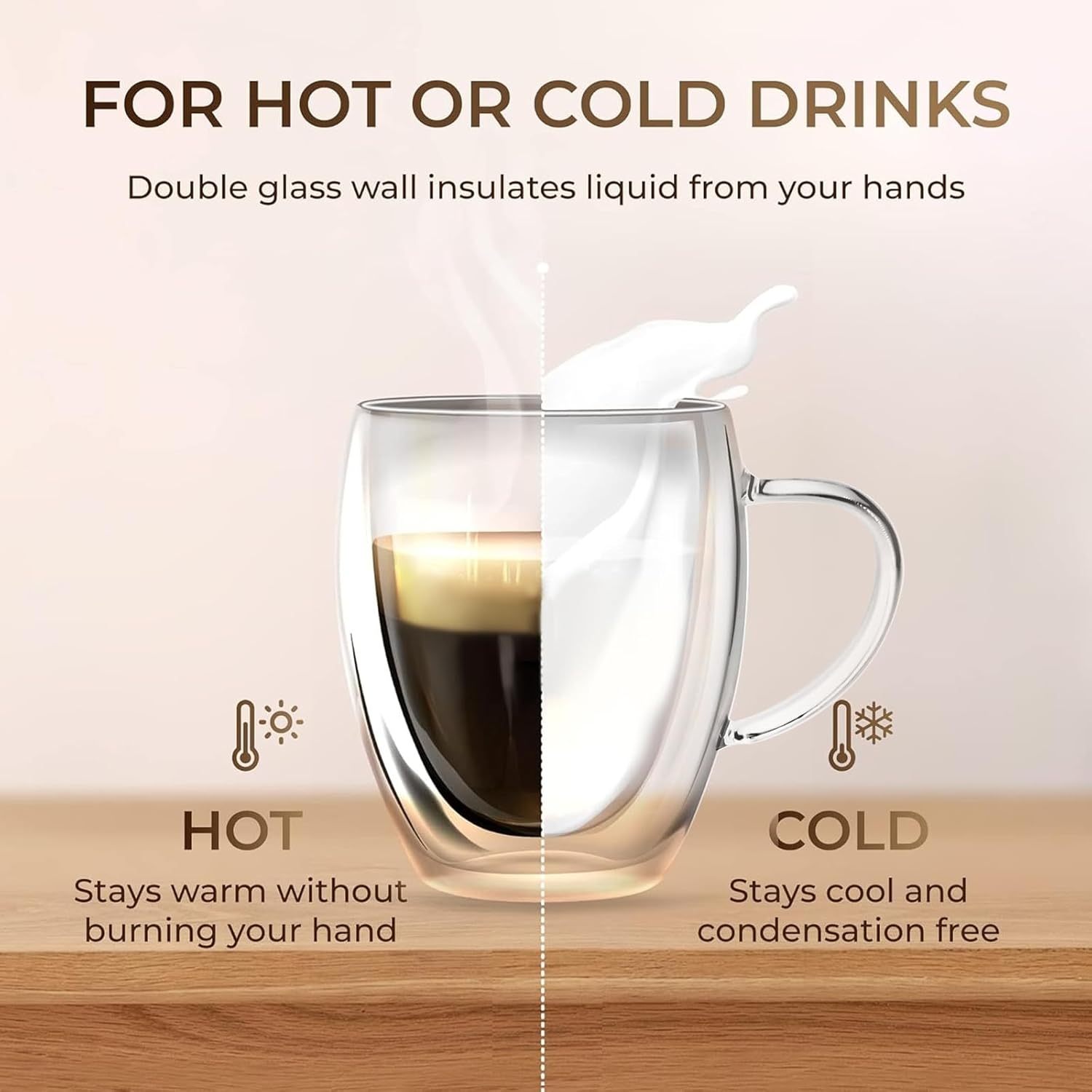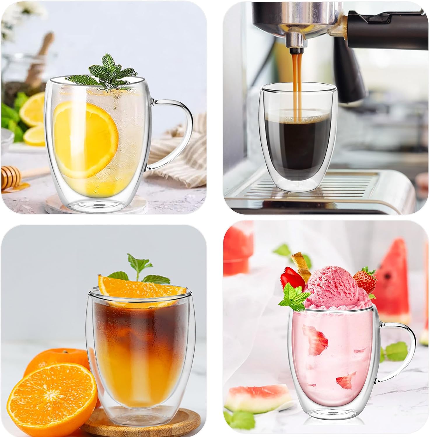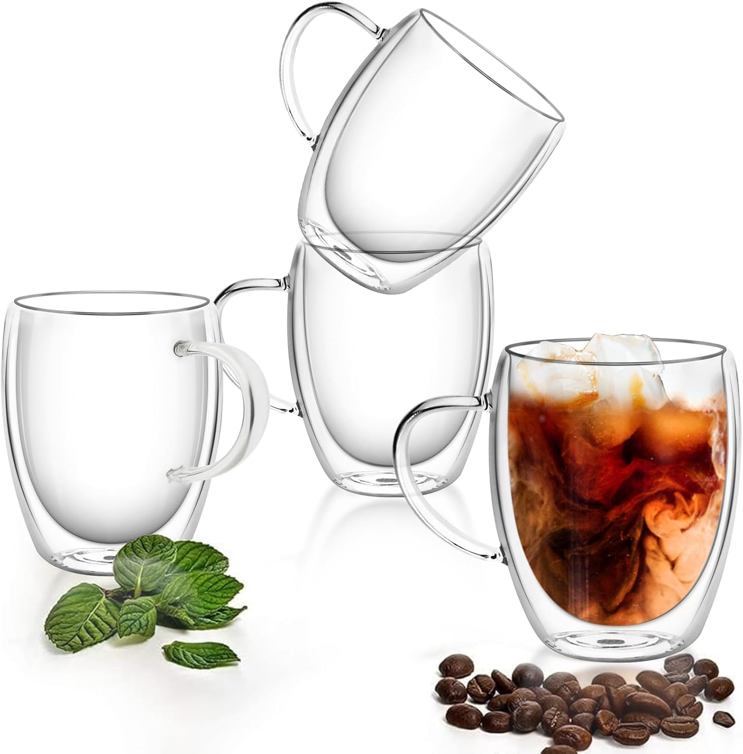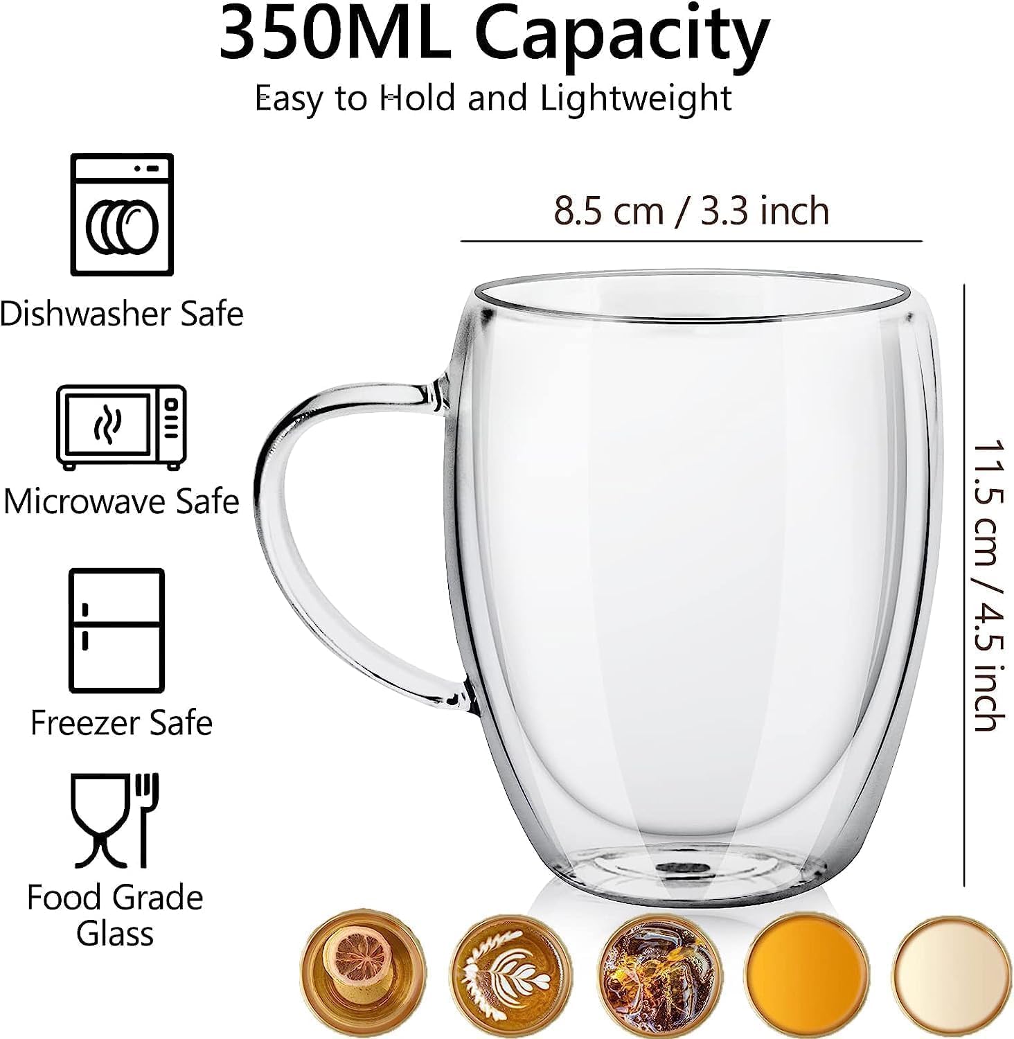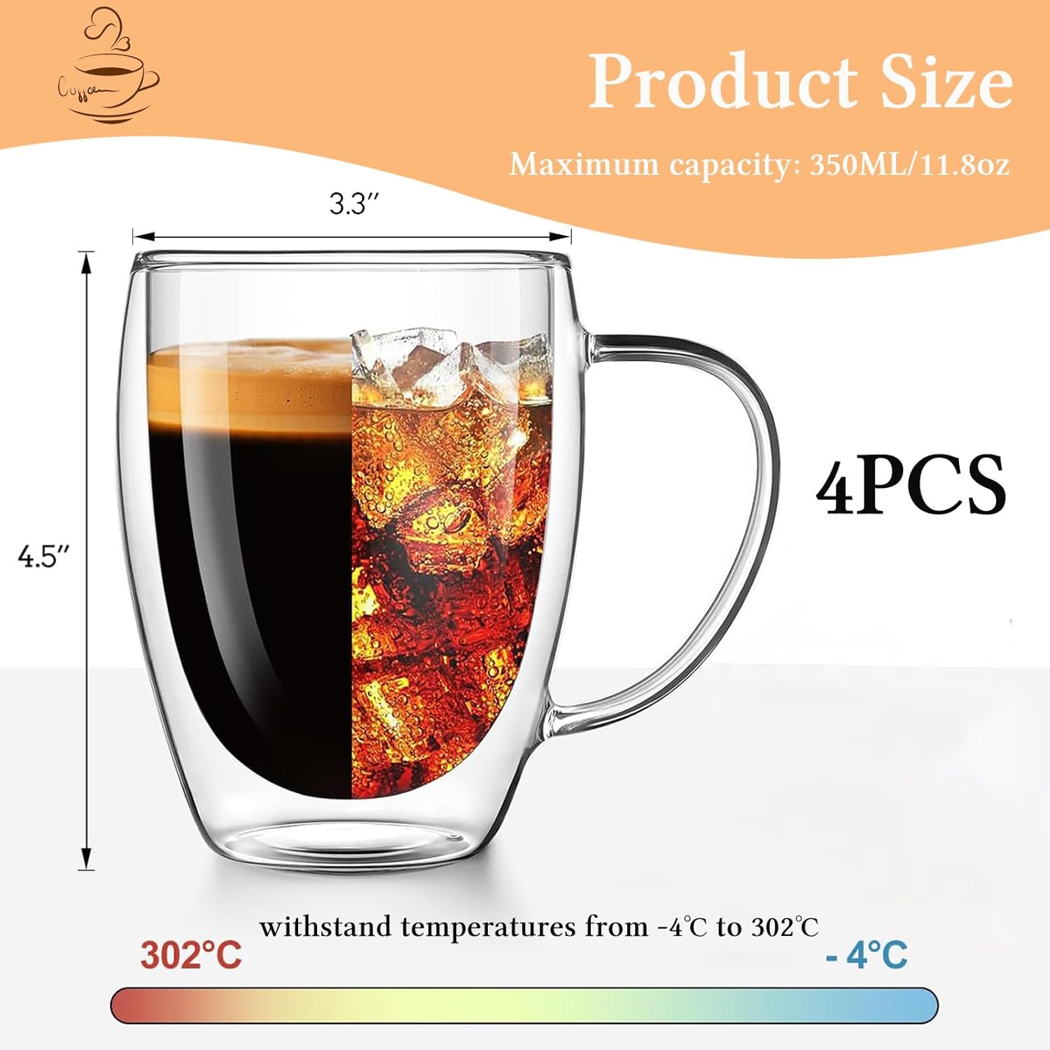 【Regarding Size】This 4-pack double-layer insulated glass coffee cup is designed specifically for daily consumption, with a standard capacity of 350ml that is just right. It can meet the single consumption needs of most people while avoiding waste. Whether it’s morning coffee, afternoon tea, or refreshing cold drinks, it can be easily controlled. The height of the cup is 4.5 inches (approximately 11.4 centimeters).
