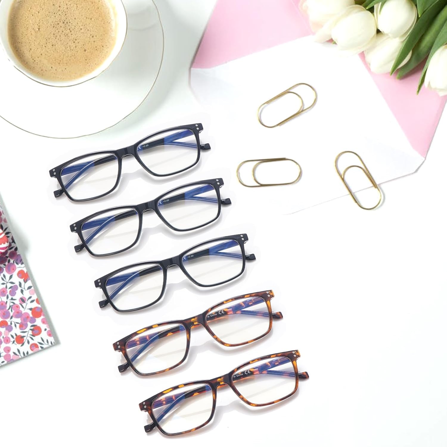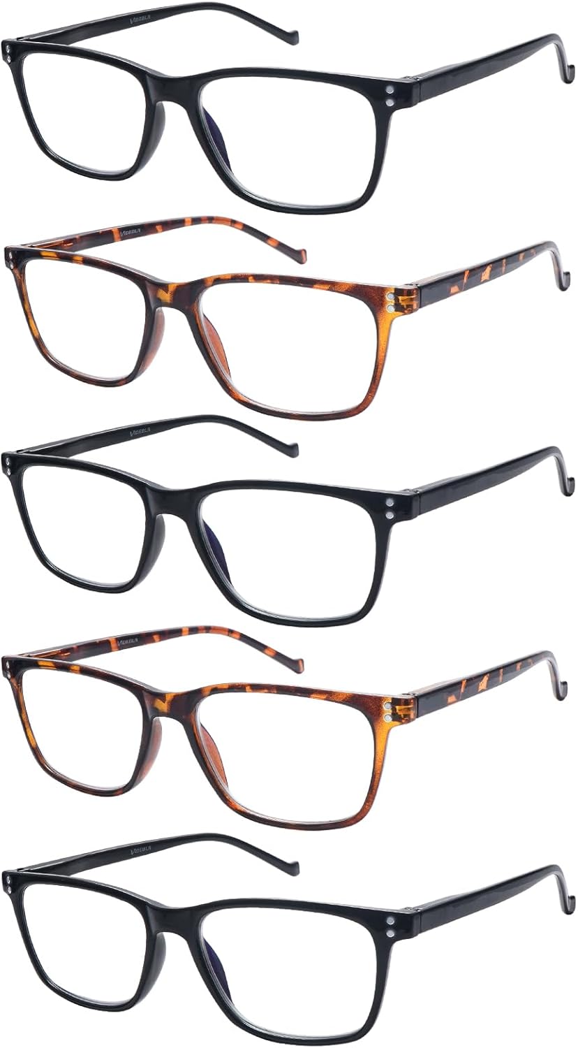 5 Pack Stylish Reading Glasses for Men Women Blue Light Blocking Lightweight Computer Readers with Spring Hinges