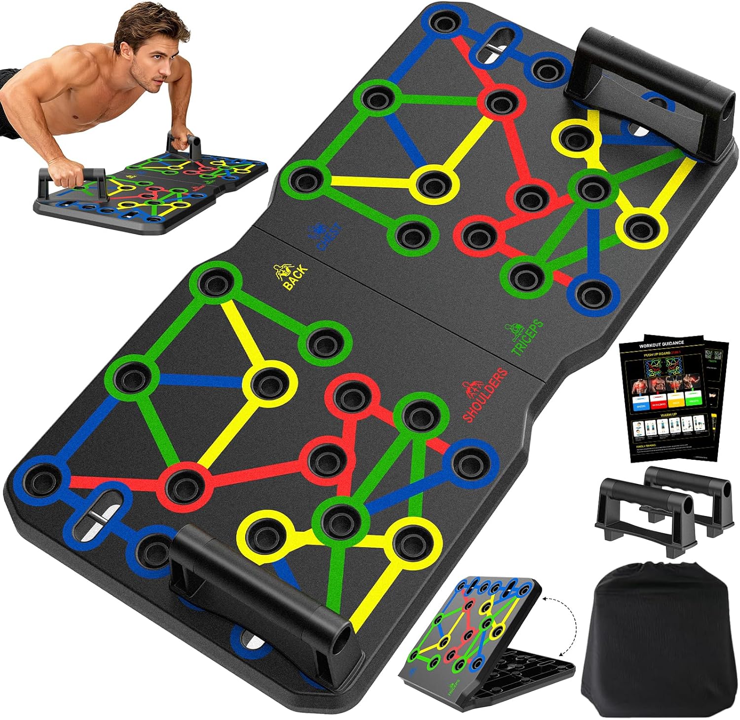AERLANG Push Up Board, Foldable Fitness Training System 20 in 1 Multi Functional Home Gym Equipment for Upper Body Strength Training Burn Fat Sculpt Shoulders Chest Back Triceps