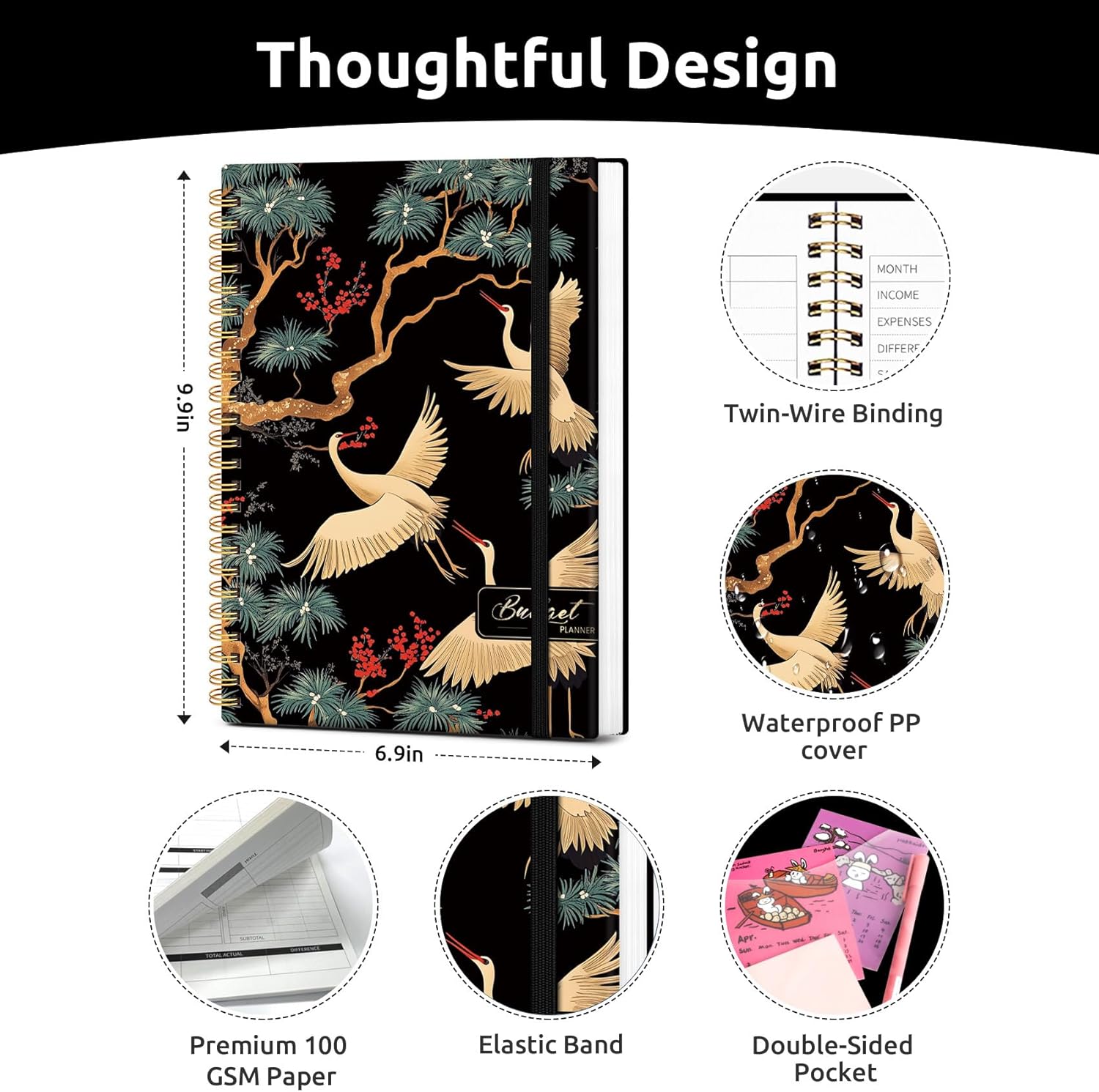 Reliable and Convenient Design – Our monthly budget planner is designed for your convenience and built to last. The water-resistant cover protects against spills, while the elastic band keeps everything securely in place, and the dual-sided pocket provides extra storage. Experience a budget planner that combines practicality and durability.