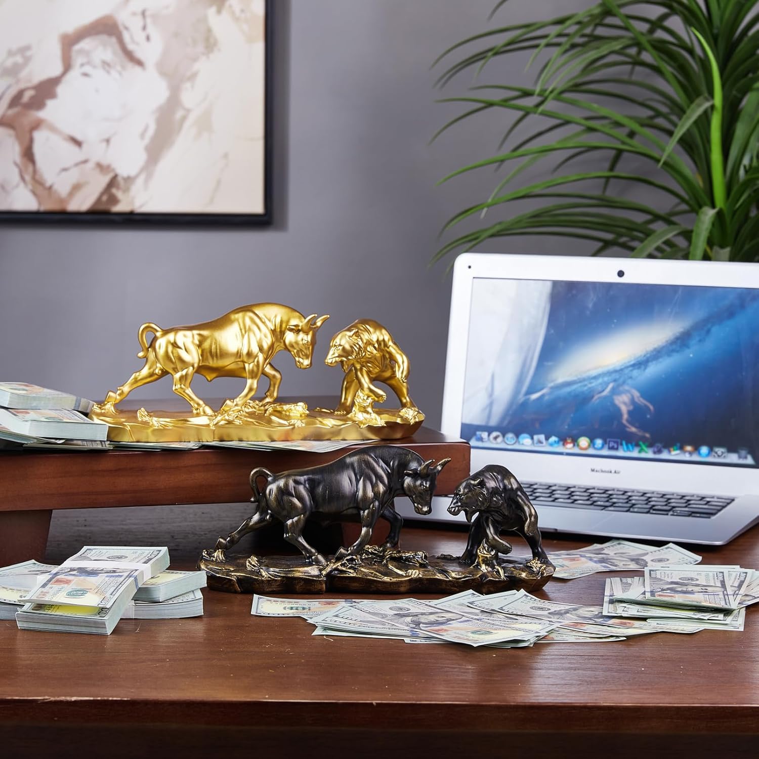 5.If you are looking for a unique stock market statue decoration, these bull and bear market decorations are perfect. The stock market bull and bear statues are not only a symbol of the market, but also a topic of conversation for everyone who sees them.