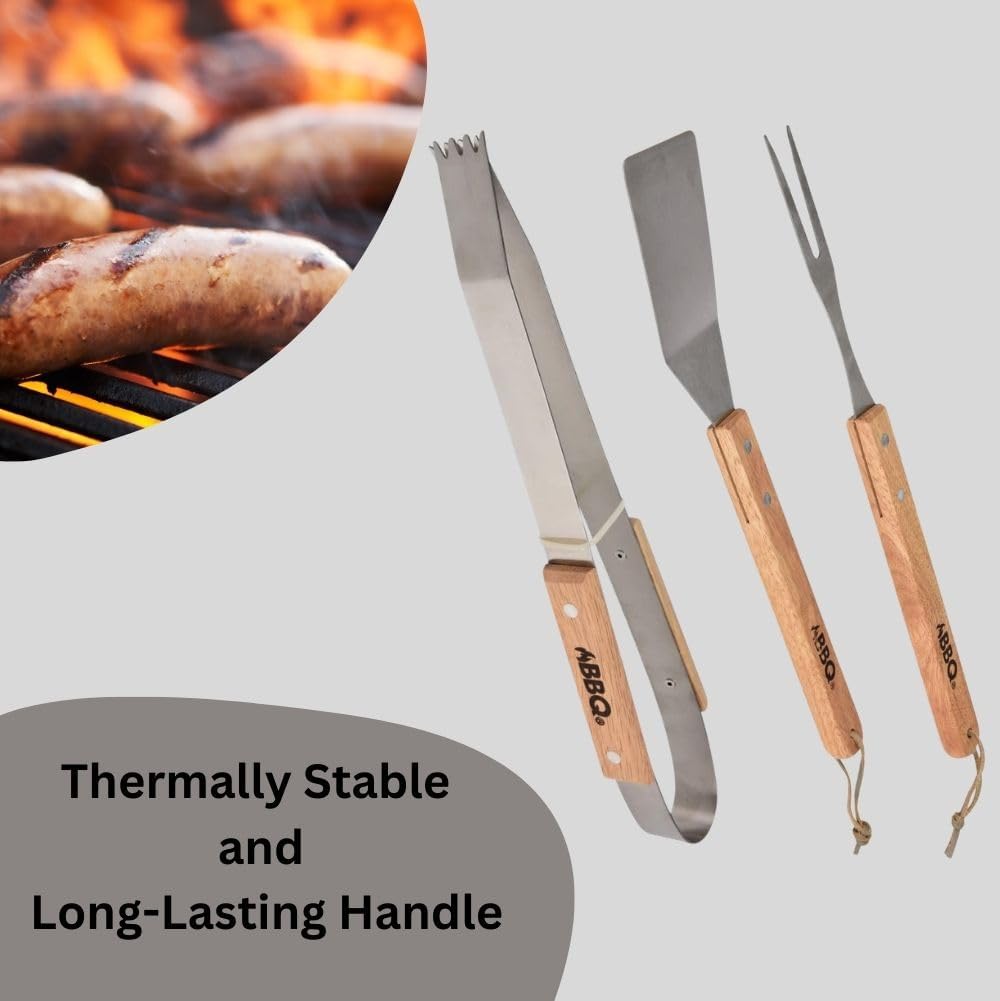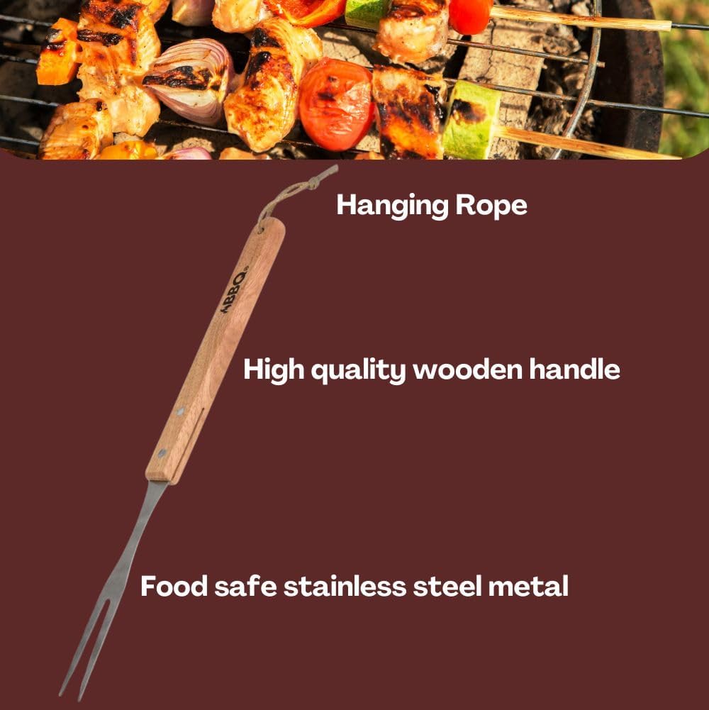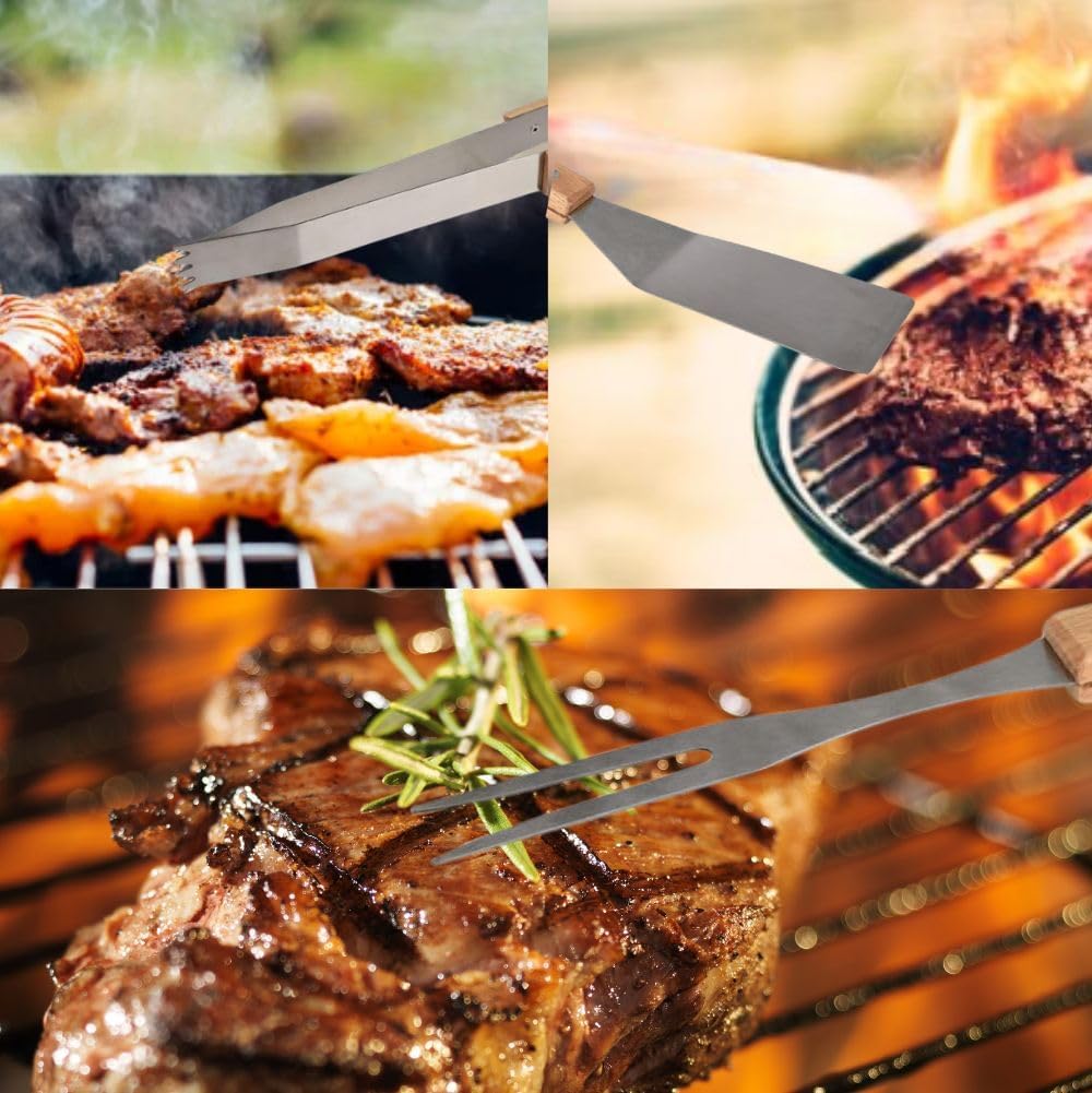 Curated from extra thick, food safe stainless steel metal part and high quality wooden handles – the bbq accessories kit gives the perfect BBQ experience, Heavy-duty and Durable for the ultimate grill and lightweight so can easily be carried along.