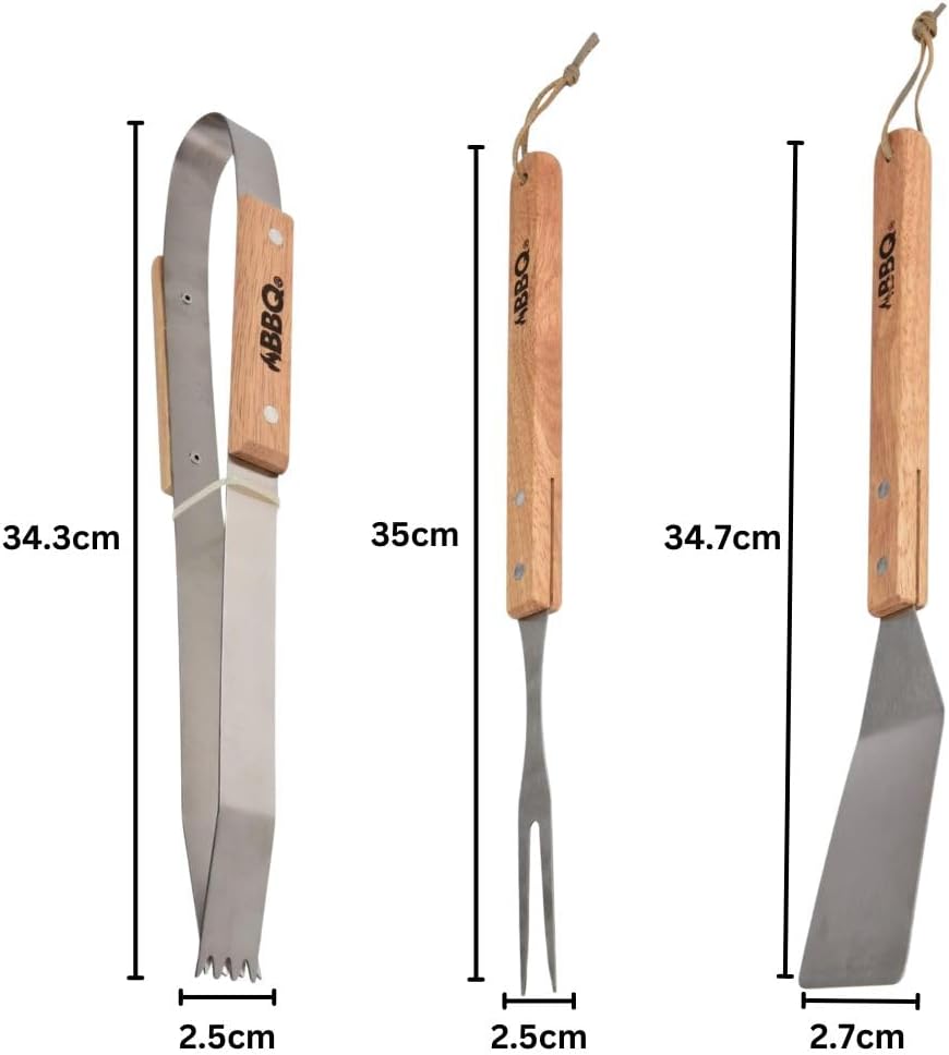 Therefore , use it for cooking, barbecues, picnic ,and much more- Also a perfect gift idea for men – Includes Spatula, Fork and Tong. SIZE: 10cm Approx.