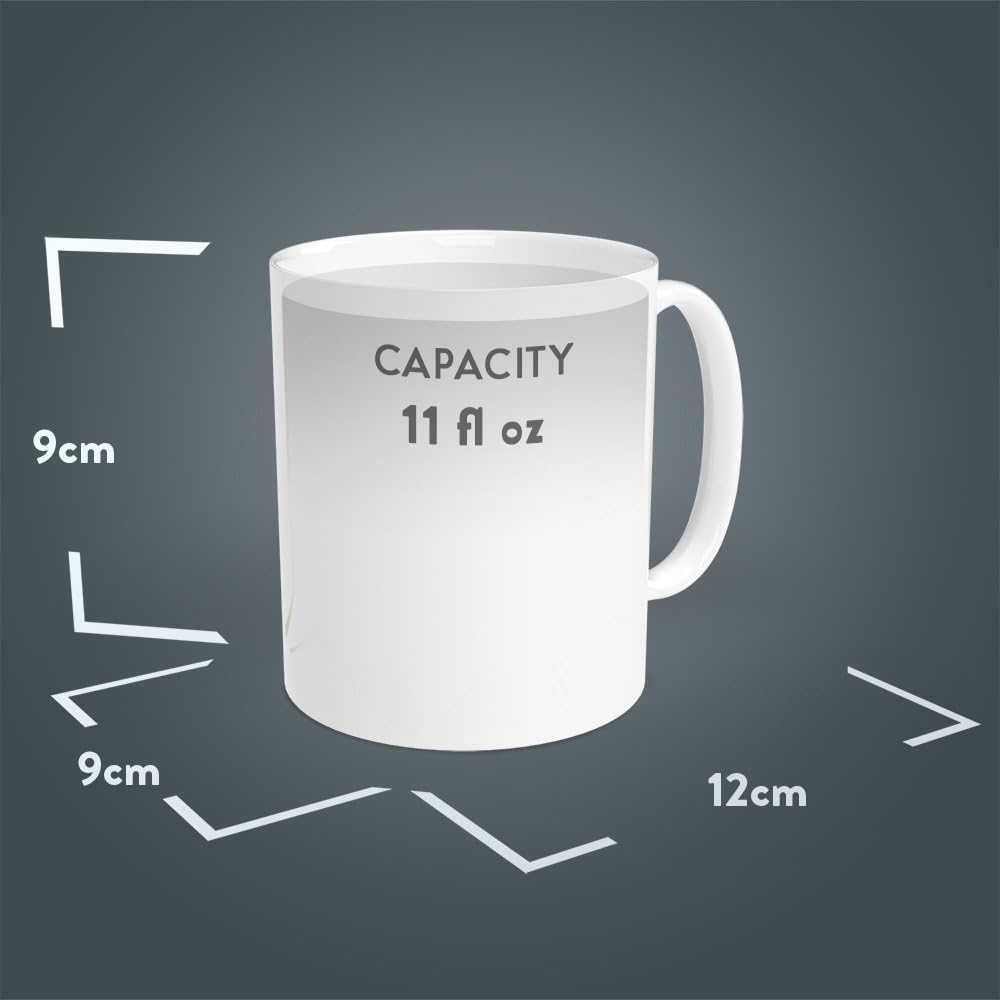 Design: Mugs are 11oz, ceramic with the design printed on both sides. Whether you’re a lefty or a righty the mug will be on show in all its glory.