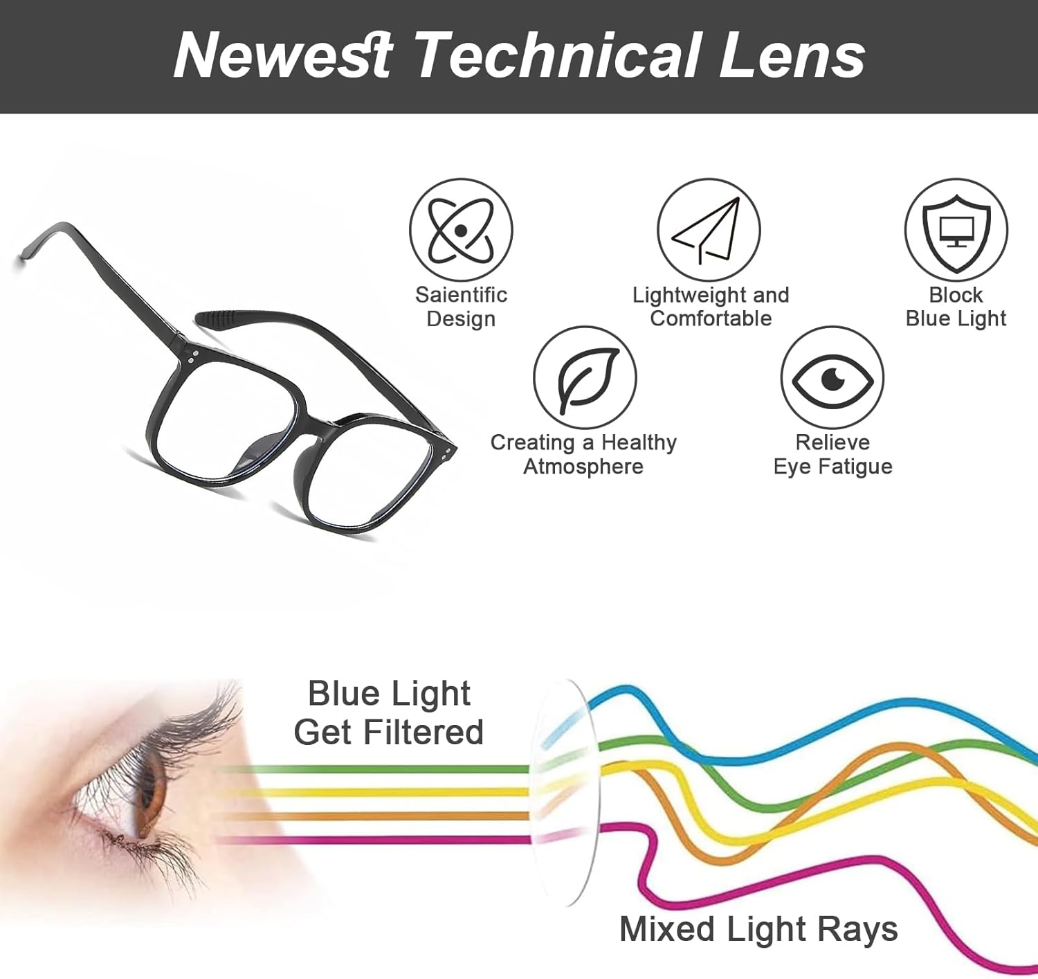 Crafted with your well-being in mind, our blue light glasses offer a perfect blend of functionality and comfort. The ergonomic design ensures a secure and comfortable fit, even during long hours of use, without putting any pressure on your eyes or nose. Say goodbye to tired and sore eyes and embrace a more enjoyable digital experience.