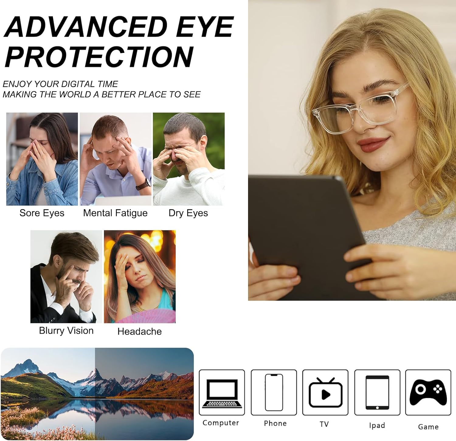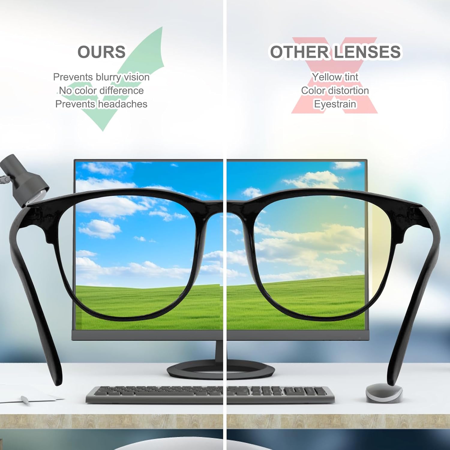 Experience unparalleled comfort and protection with our premium blue light glasses, meticulously designed to filter out harmful blue light from screens, including TVs, computers, and mobile phones. These glasses significantly reduce eye strain, dryness, and fatigue, enabling you to enjoy extended screen time without discomfort.