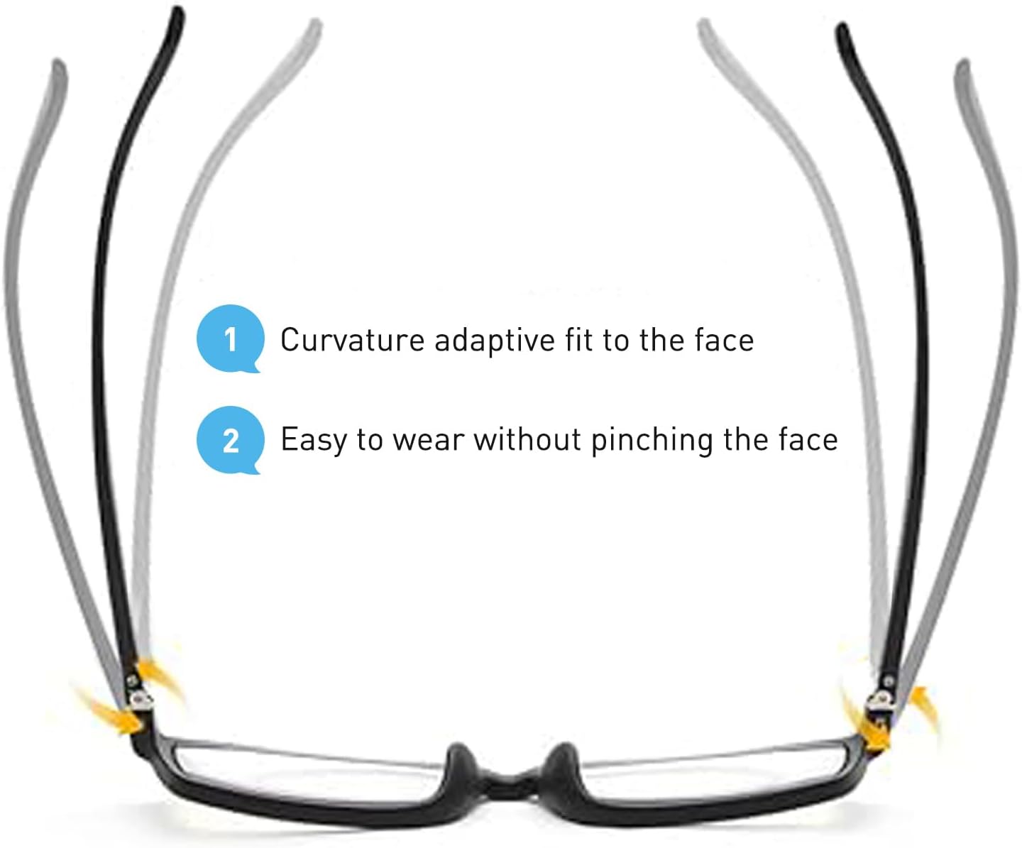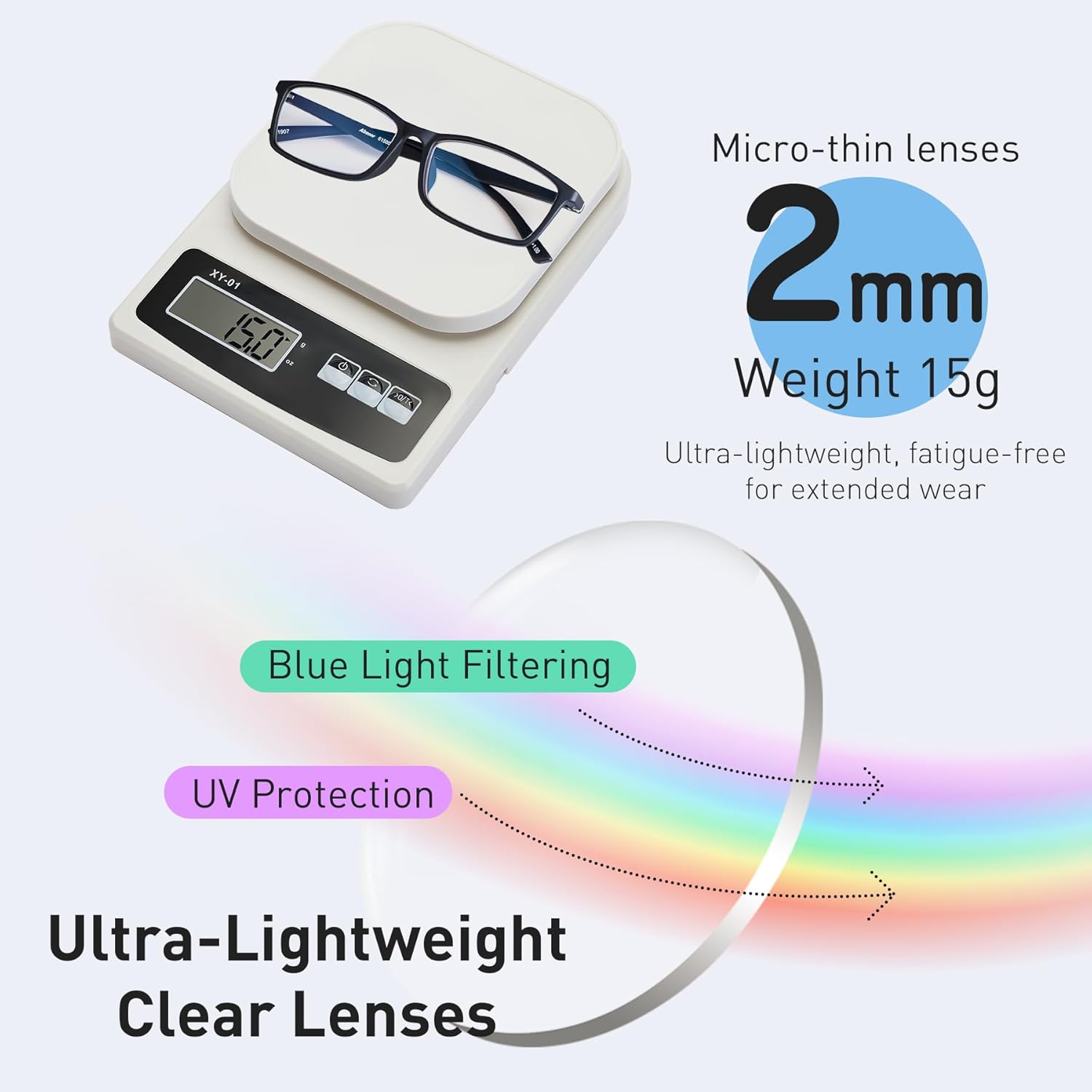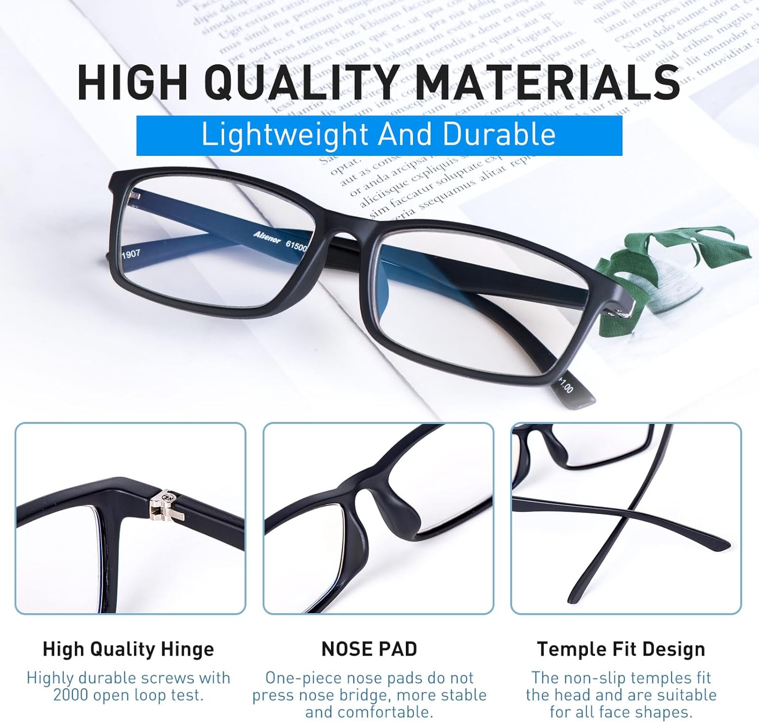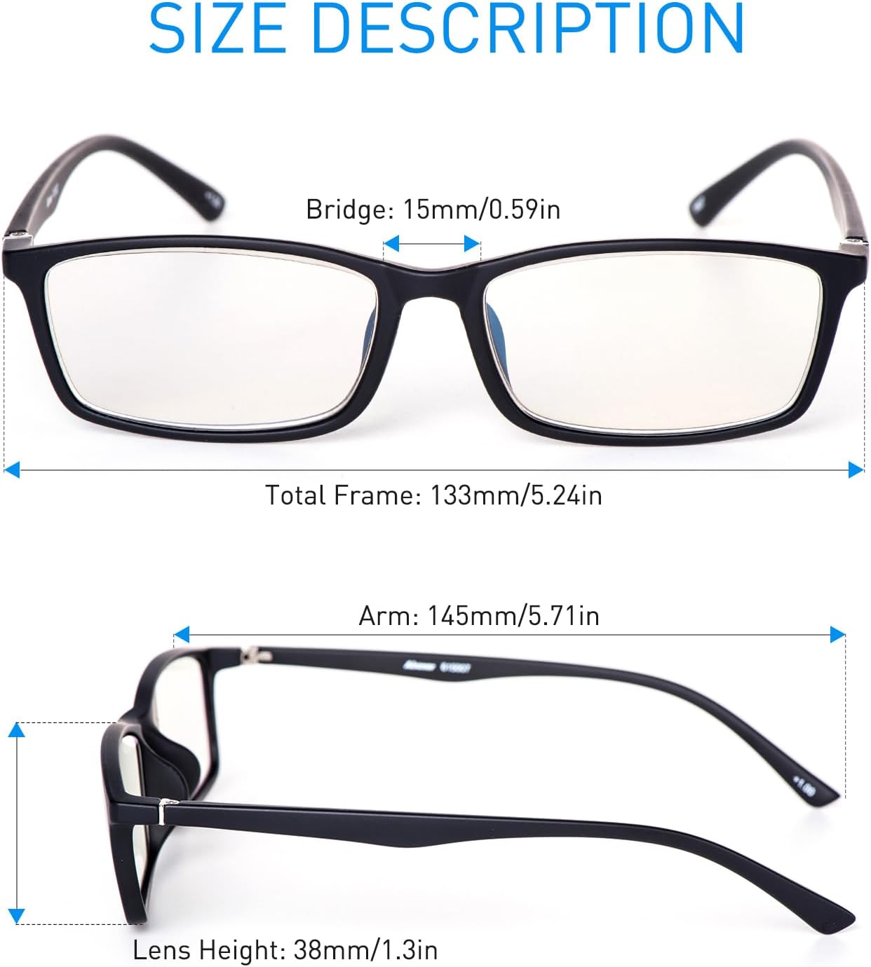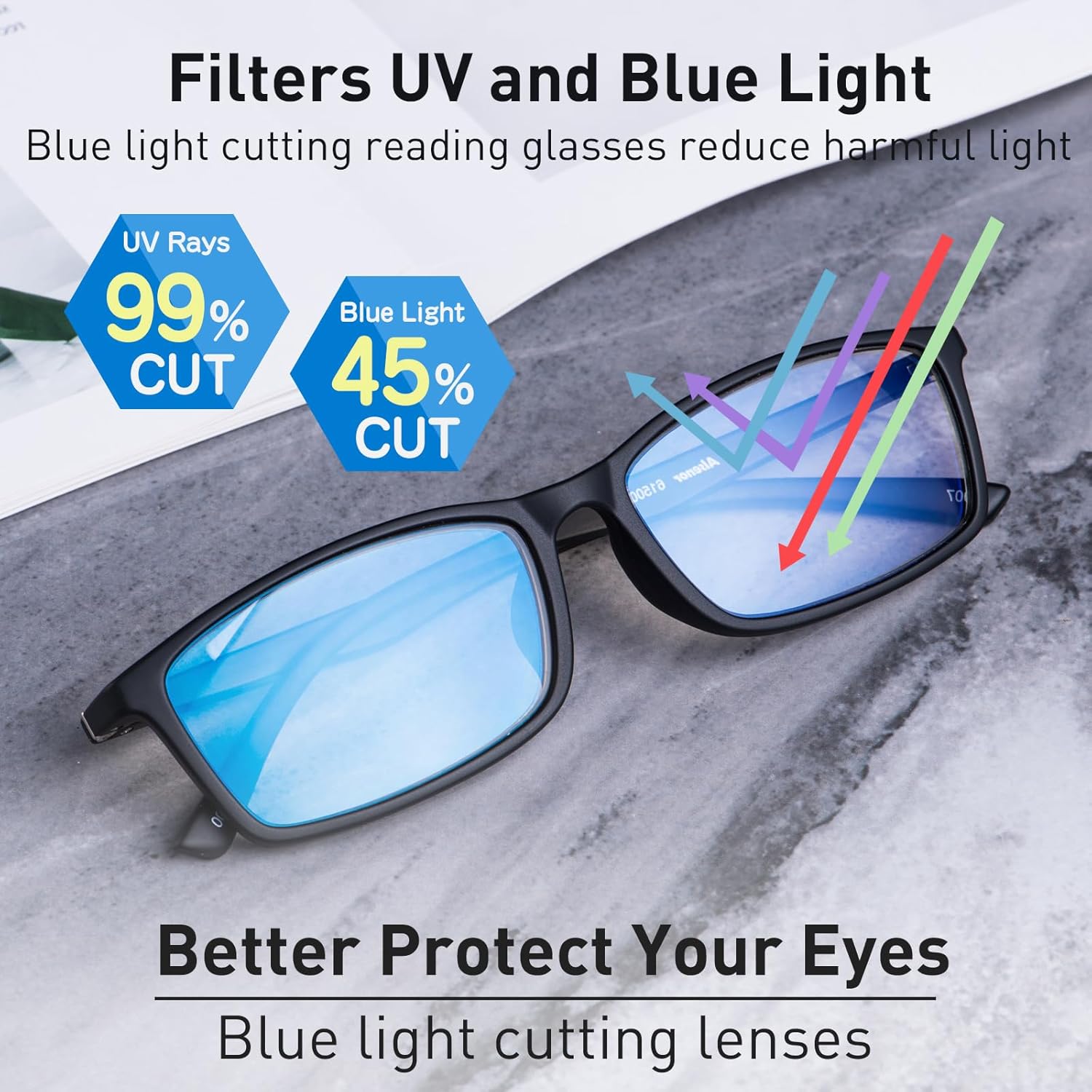 These lightweight men’s reading glasses feature a flexible and durable TR90 frame for all-day comfort. Equipped with innovative ultra-thin aspherical lenses, they reduce glare and eye strain during extended reading or screen use. The lenses offer effective blue light blocking (45%) and 99% UV protection, helping to minimize fatigue and improve sleep. With a versatile classic design, they are suitable for work, reading, or gaming. The set includes a glasses case and cleaning cloth.
