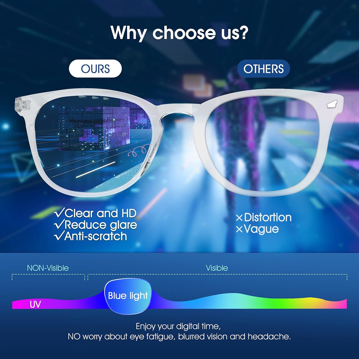 【PLENTY OF CHOICES】- Whether it’s laptops, ipads, PCs or mobile phones, we offer a wide range of choices to meet our customers’ demands, including blue light blocking or blue light filter glasses, gaming or computer glasses, and anti-glare or anti-blue-light glasses, etc., all super-comfortable and suitable for men women to wear for all-day long to protect eyes’ health.