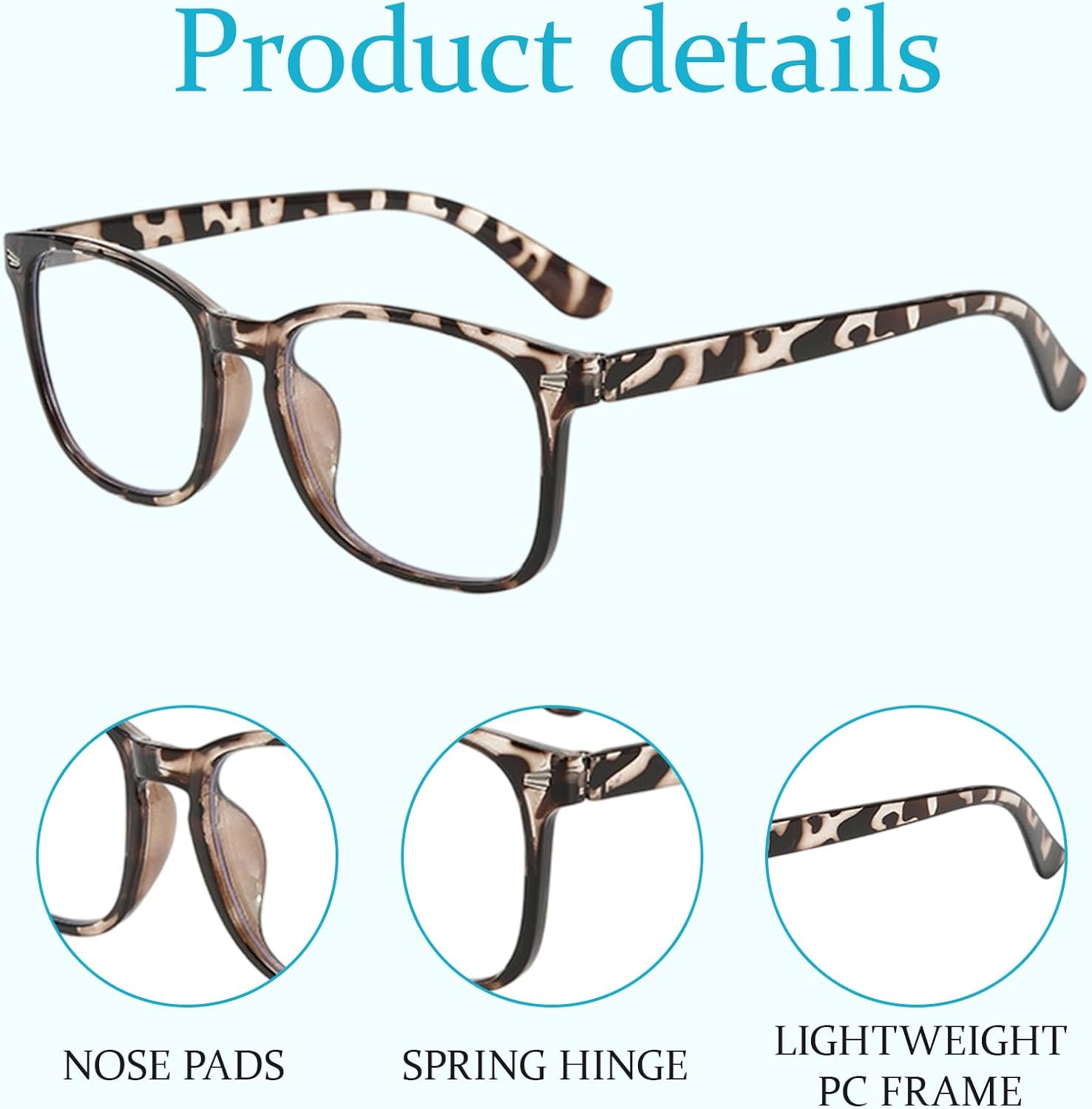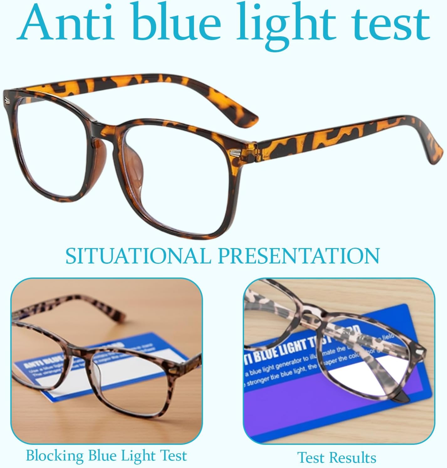 Enhance your digital experience with these blue light glasses designed for modern screen users. The clear lenses effectively filter blue light while maintaining true color perception, making them ideal for various activities from computer work to late-night reading. Key Features: Blue light filtering technology helps reduce digital eye strain Lightweight 40*145mm frame with comfortable nose pads Anti-glare treatment minimizes reflections from screens and artificial lighting Fashionable clear lens design suitable for daily wear Non-prescription lenses suitable for all users Whether you’re working long hours at the computer, enjoying gaming sessions, or reading on your tablet, these glasses provide comfortable protection for your eyes. The versatile design makes them suitable for office use, travel, or home entertainment.