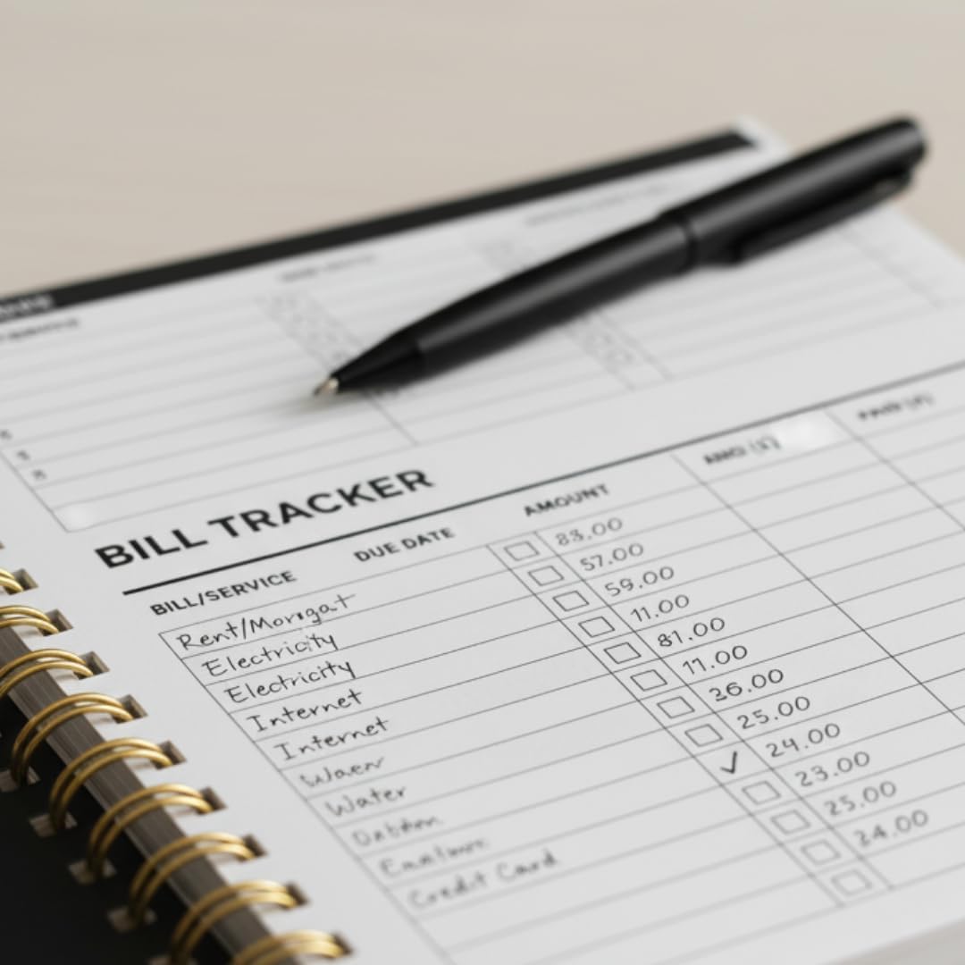 The planner features a dedicated bill payment tracker to help you keep track of due dates and amounts.