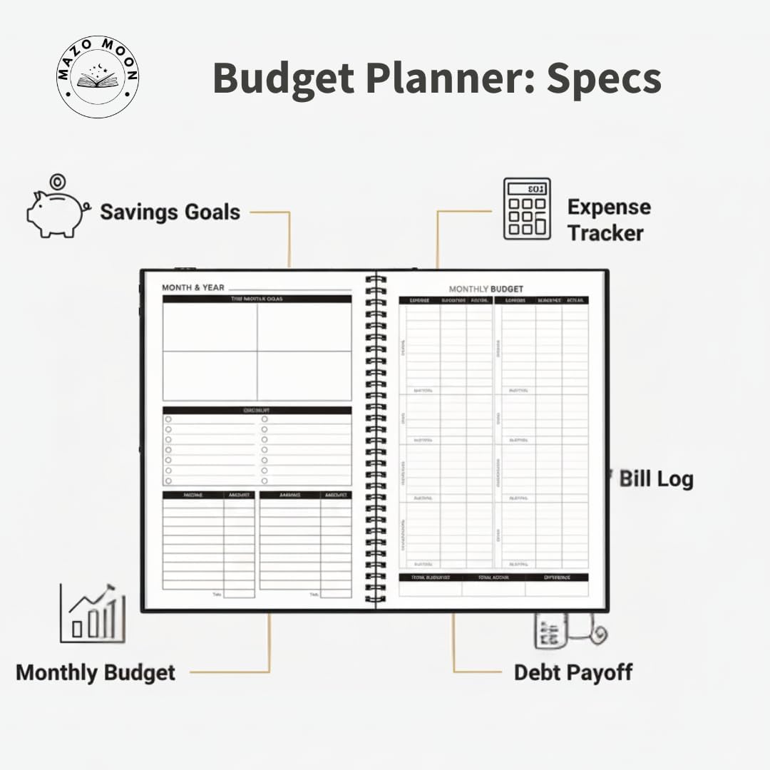 Budget Planner – Finance & Expense Tracker Notebook with Monthly Budget Pages, Bill Payment Tracker, Debt Payoff & Savings Goals, A5 Spiral-Bound Money Management Journal