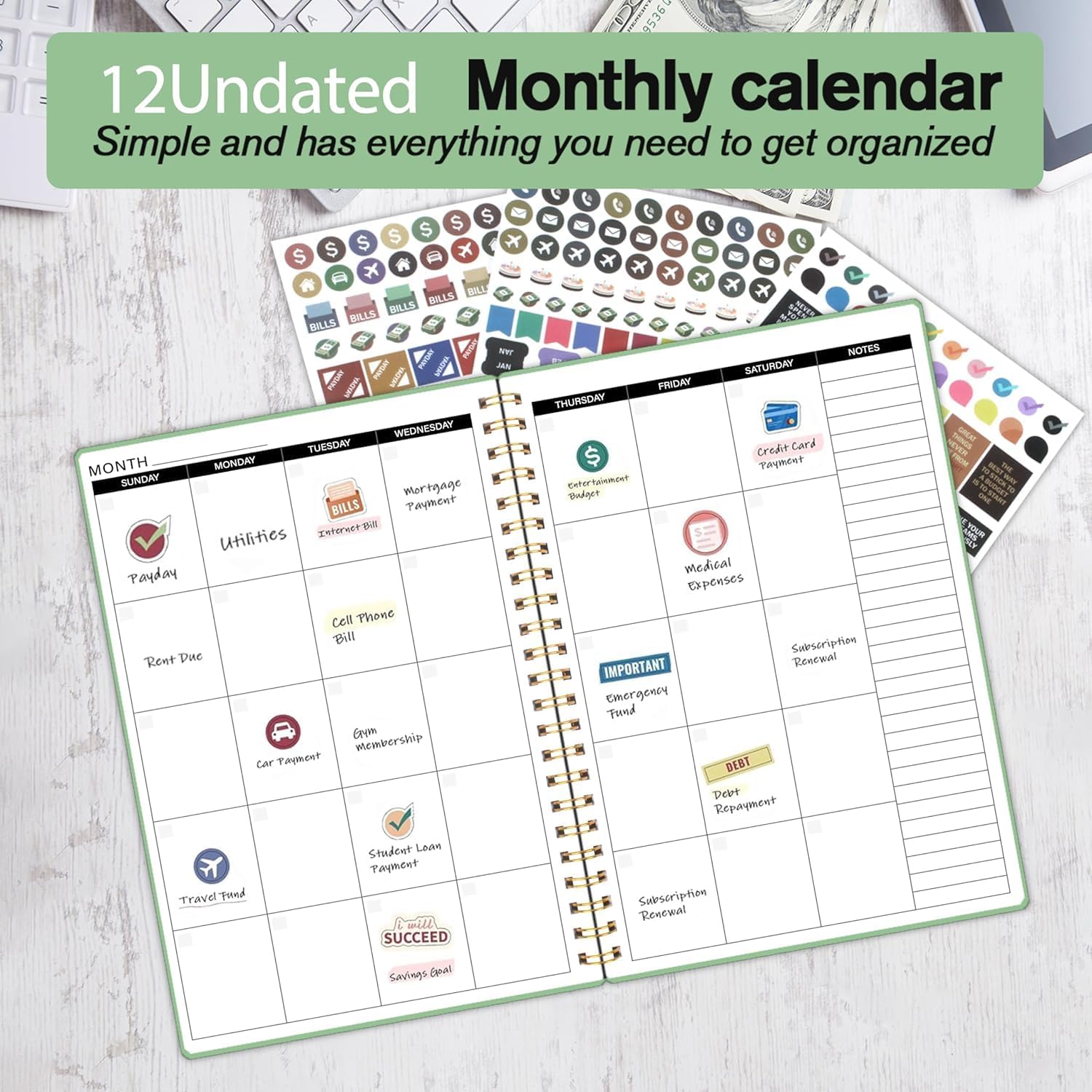 Personalize Your Path to Financial Success: Our monthly bill planner includes three sticker sheets to unleash your creativity. Planning instructions provide guidance, while inspirational quotes on each monthly calendar page serve as constant reminders to stay focused on your financial goals.
