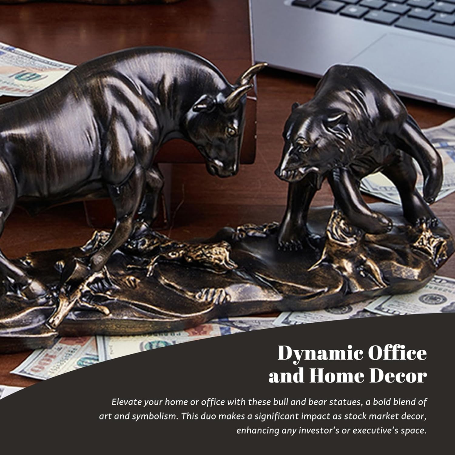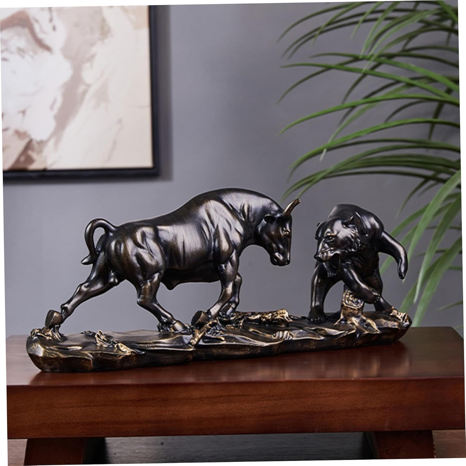 Dual Market Theme: Featuring both bull and bear figures, this sculpture represents the dynamic balance of the stock market, ideal for inspiring traders and financial professionals.