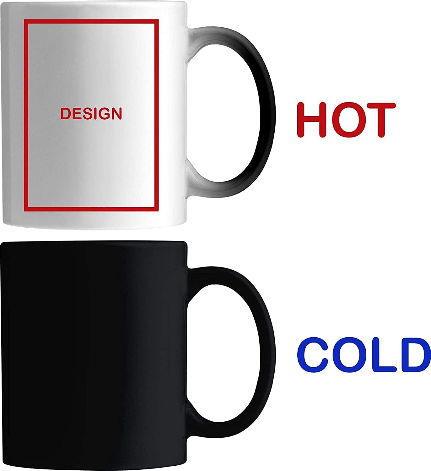 Ceramic magic mug that changes color to reveal the design. Magic mug reacts to temperature and changes from black to white when hot drink is inside.