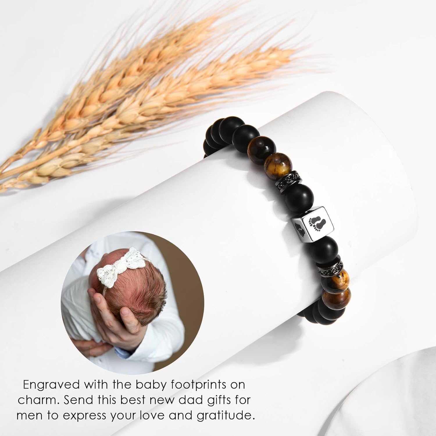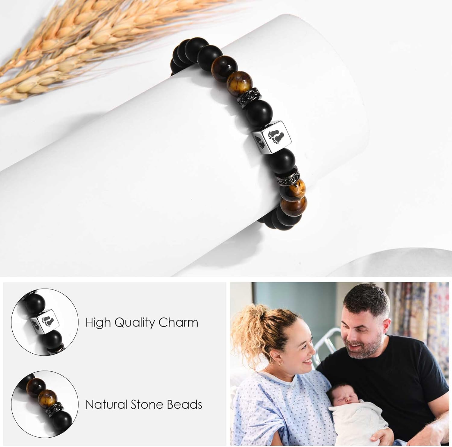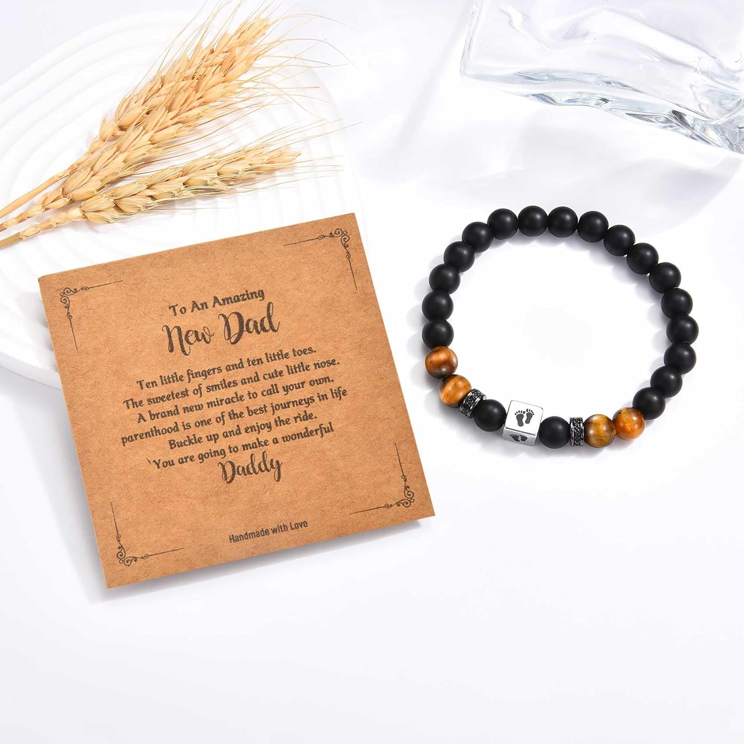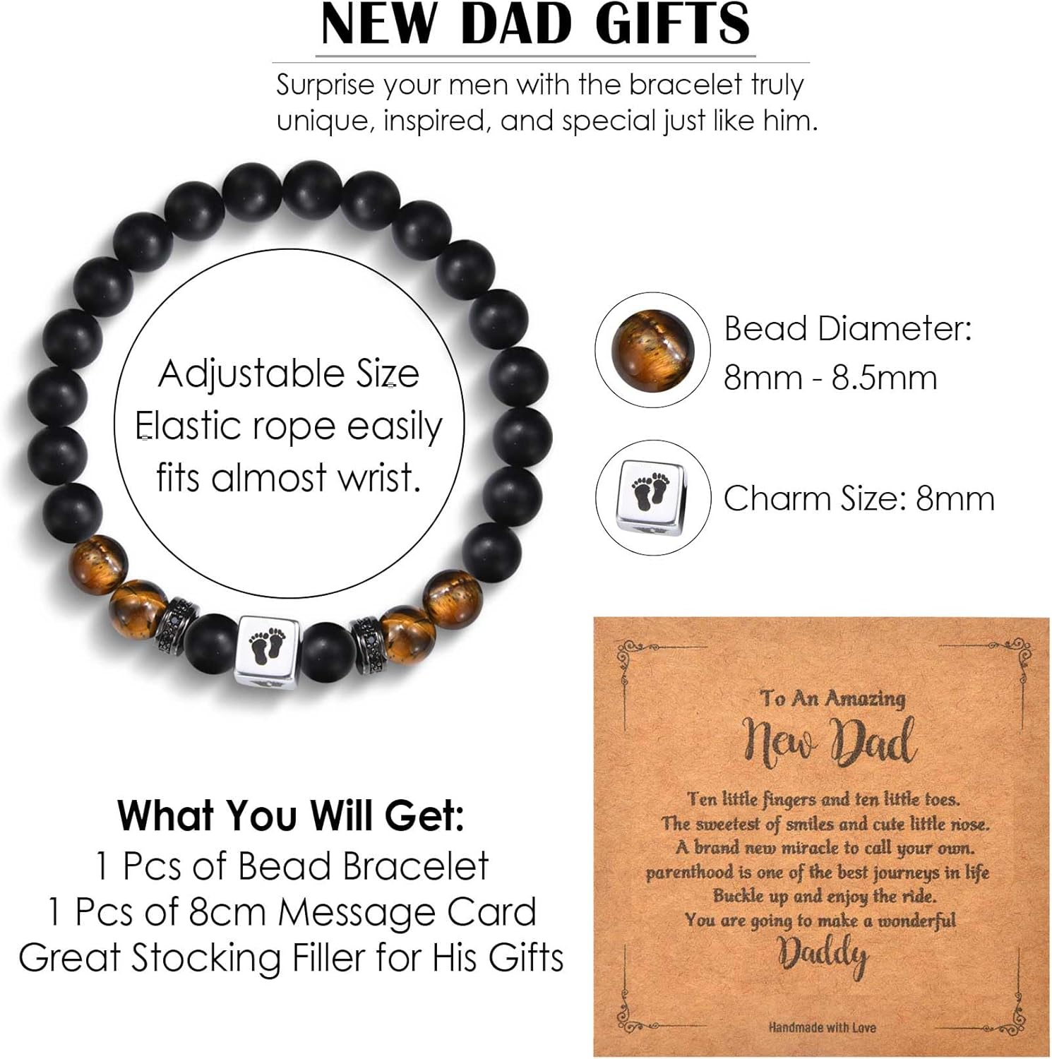 CERSLIMO New Dad Gifts – Natural Stone Bracelet for Dear Daddy, New Father to be Gifts, First Time Daddy Gift for Husband with Baby Footprints Charm Birthday Christmas Fathers Day