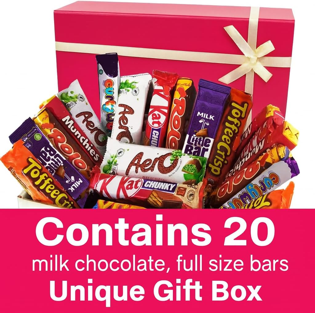 Assorted Milk Chocolate Bars – Includes a rich mix of popular full-size milk chocolate bars offering smooth, creamy, and indulgent flavours everyone loves