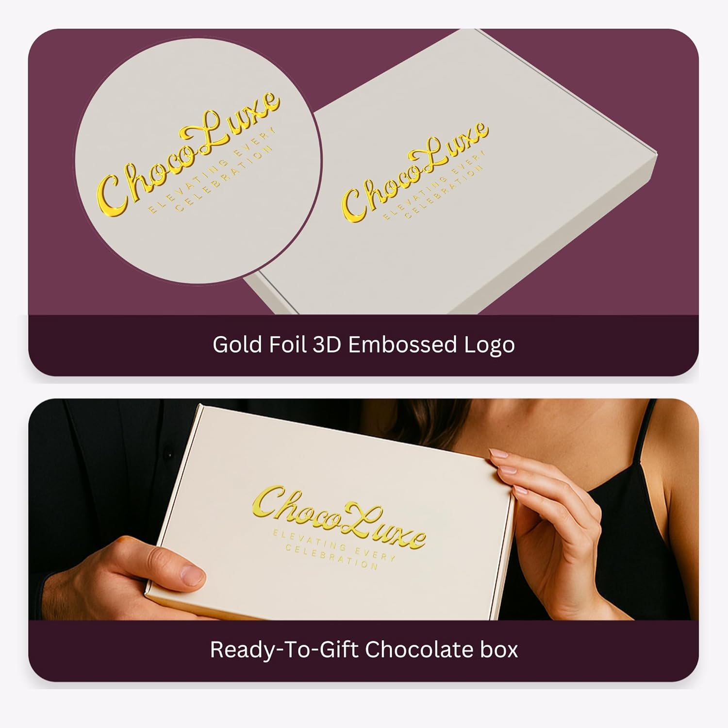 🎁 ELEGANT GIFT BOX – Surprise your loved ones with our elegant chocolate gift box & chocolate bars, the perfect gift boxes for anyone. Designed with a sleek soft gloss finish and embellished with a radiant gold foil logo, this luxurious box creates an unforgettable unboxing experience that shows just how much you care.