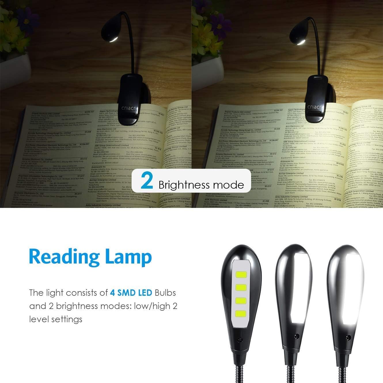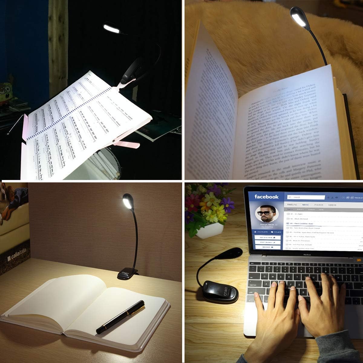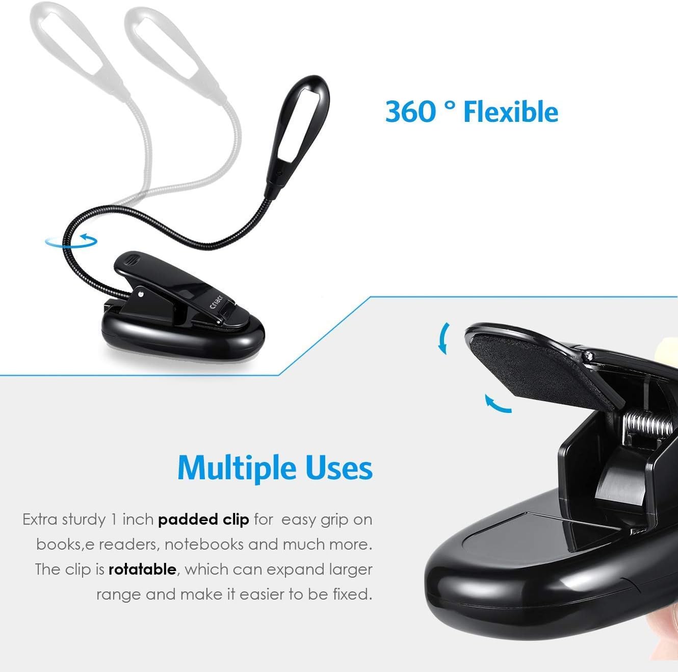 Flexible Gooseneck and Firm Clip: The reading light with a 360° flexible gooseneck can be adjusted to any angle and bent into any shape to find the ideal position. The sturdy clip with non-slip pads can reach a maximum range of 5cm so you can easily clip them to tables, shelves, chairs, etc., without worrying about falling off or scratching the furniture.