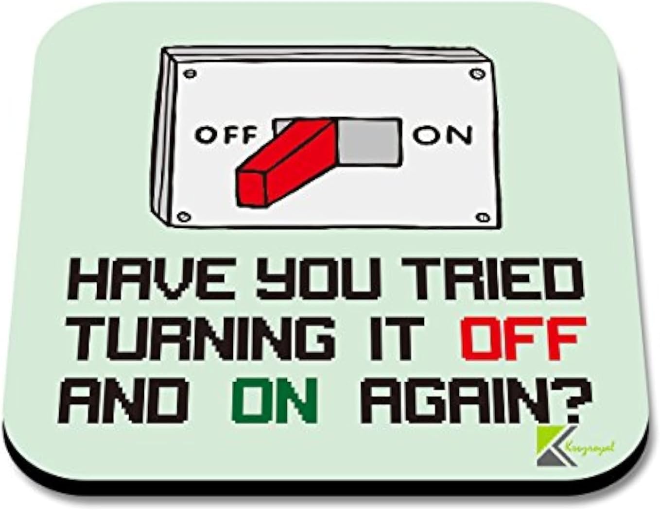 CS070 Have you tried turning it off and on again? Novelty Funny Coffee Tea Gift Glossy MDF Wooden Coaster | Gifts for Tech Support, Dad, Men, Colleagues – MDF Drink Mat – Fathers Day & Geek Present