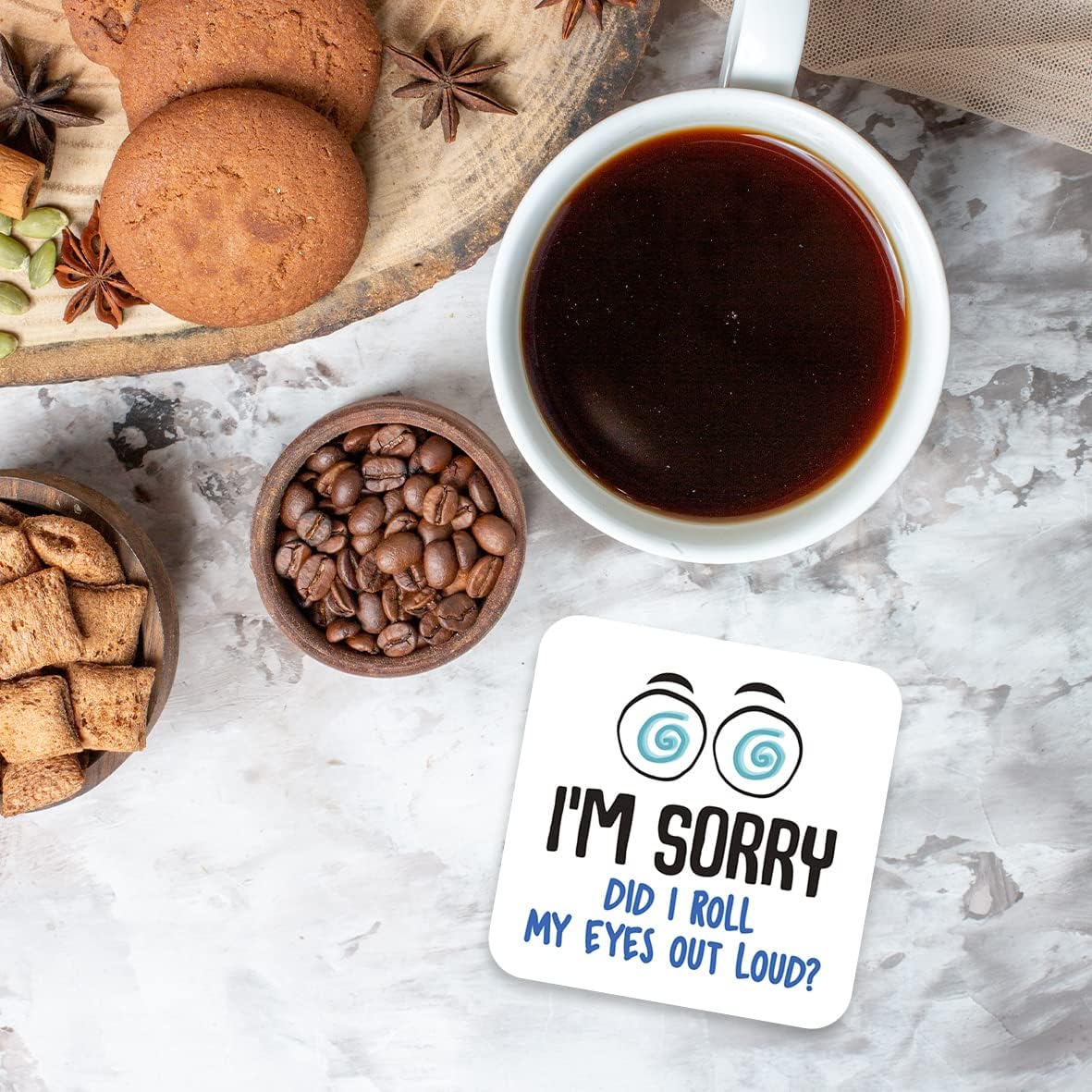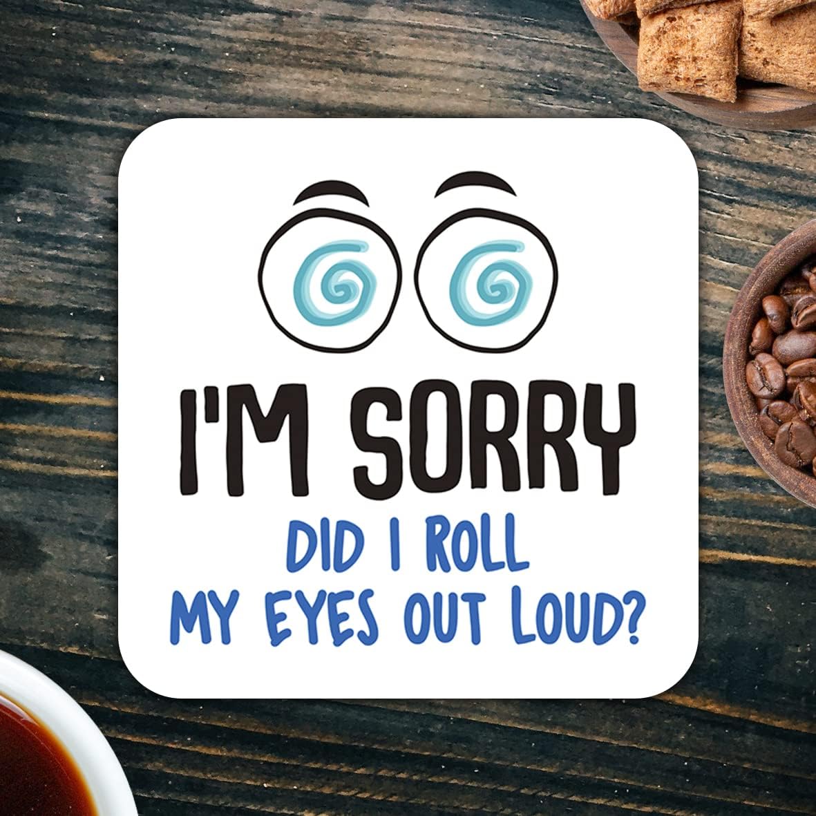 😂 SPEAK YOUR MIND (WITHOUT SAYING A WORD): For those moments when your face says it all. This coaster features the hilariously relatable quote, “I’m Sorry did i roll My Eyes Out Loud?”, making it the perfect spokesperson for your inner monologue. A must-have for anyone with a sharp wit and no poker face.