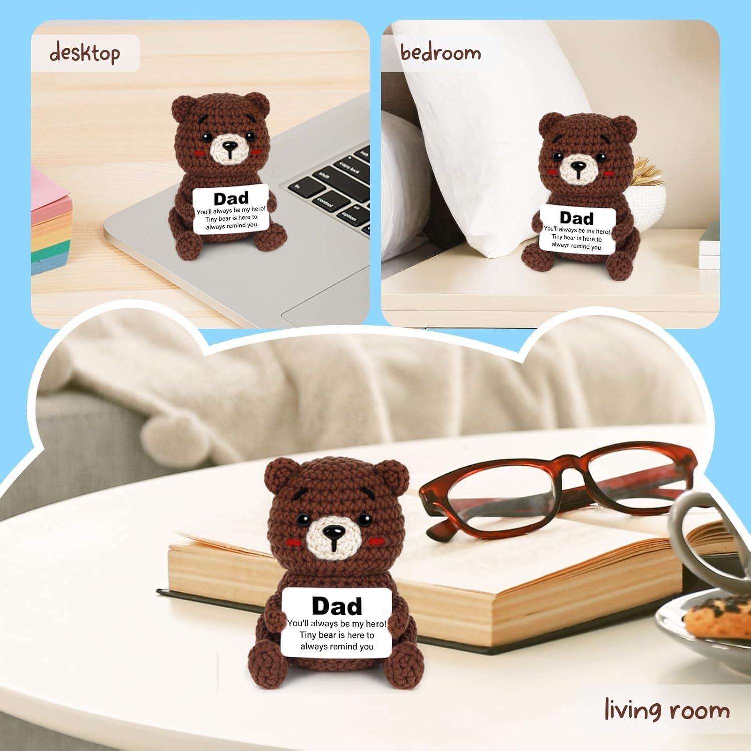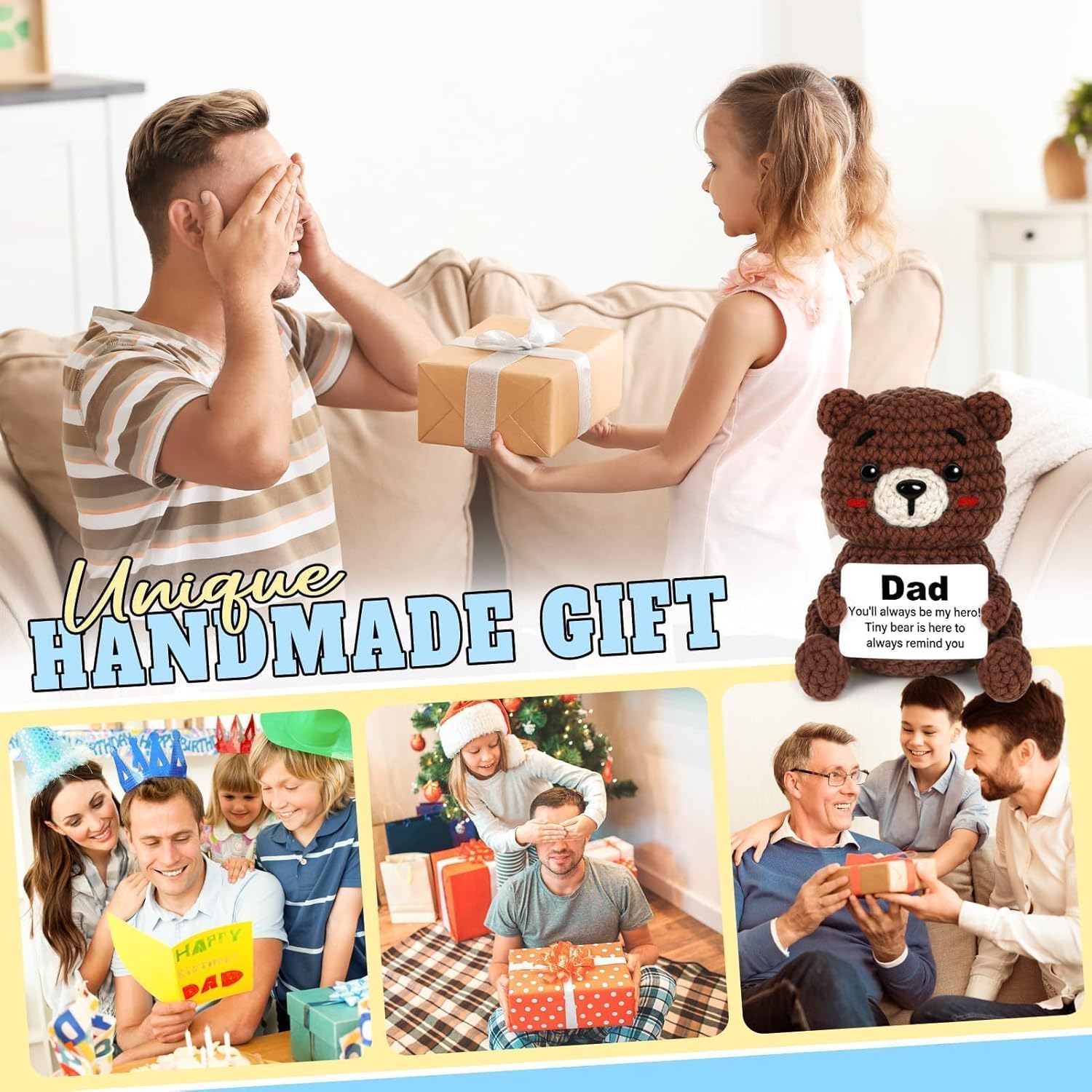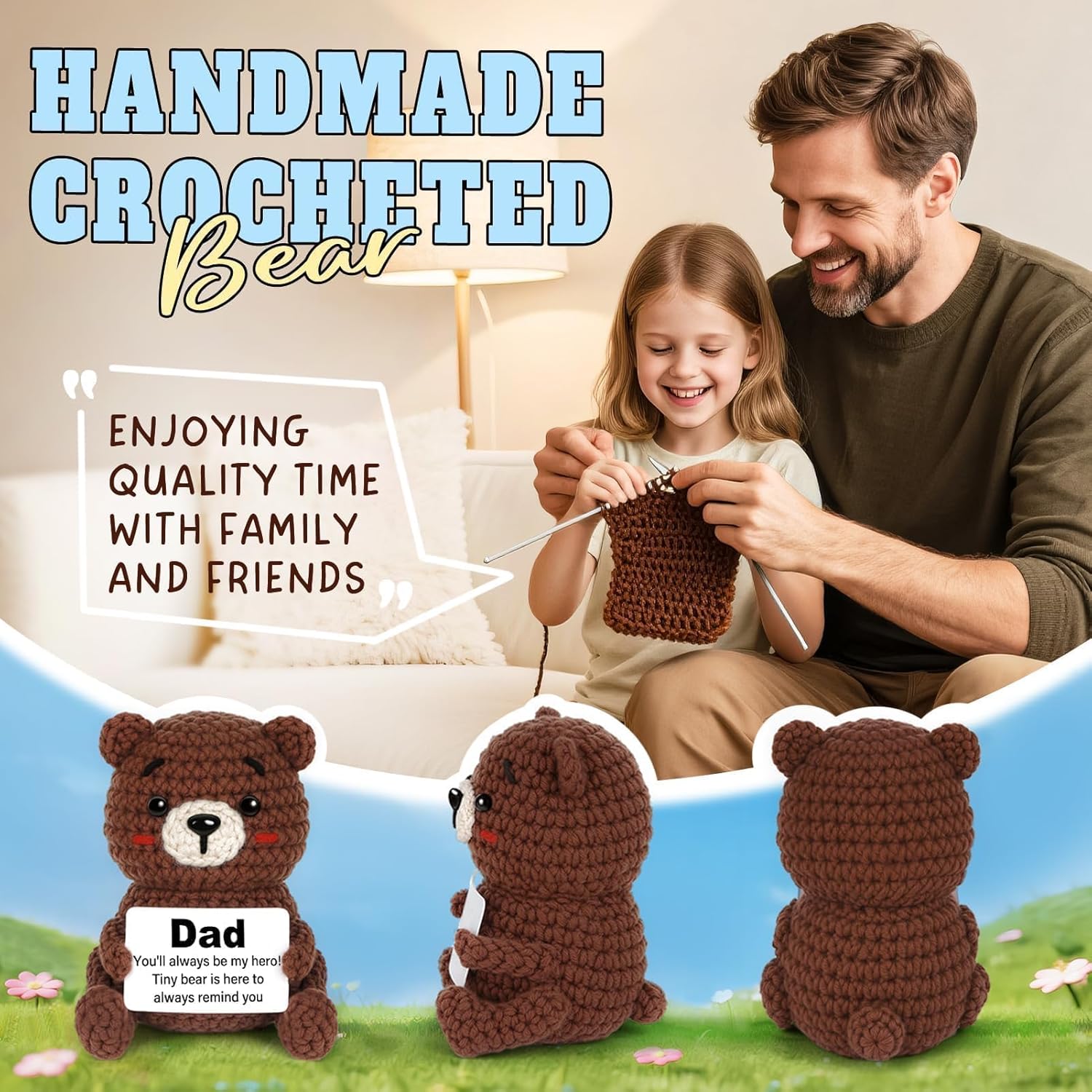 【Birthday Gift for Dad】This adorable crochet bear is the perfect dad birthday gift to bring warmth and joy to your dad. It includes a heartfelt card that says, ‘Dad, you’ll always be my hero! Let this little bear remind you every day.’ A simple yet meaningful present for dad to show your love.