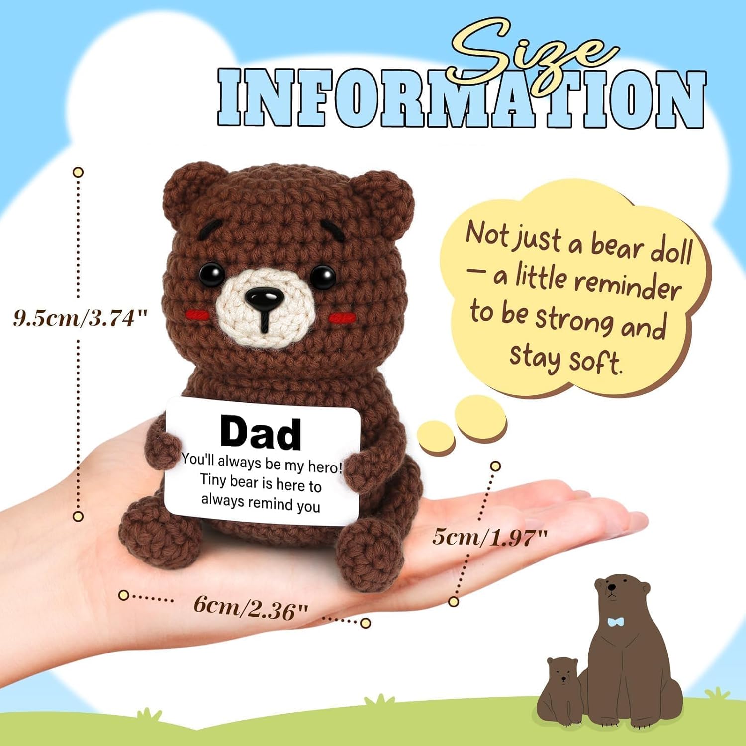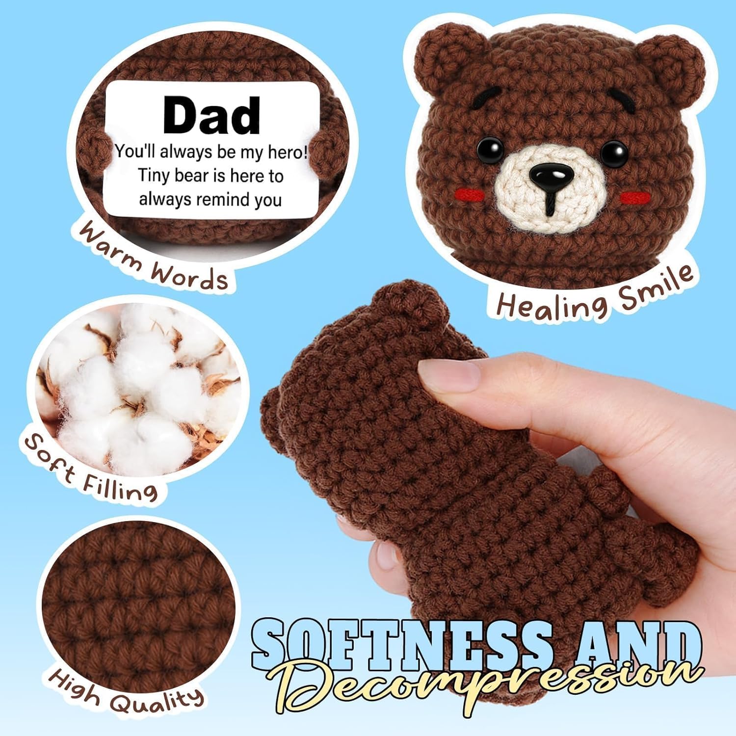 【Your Satisfaction Matters】We hope this crochet bear brings a smile to Dad’s face. If you have any questions or concerns, our friendly customer support team is here to help, ensuring your birthday gifts for dad or dad christmas gifts is as special as the love behind it.
