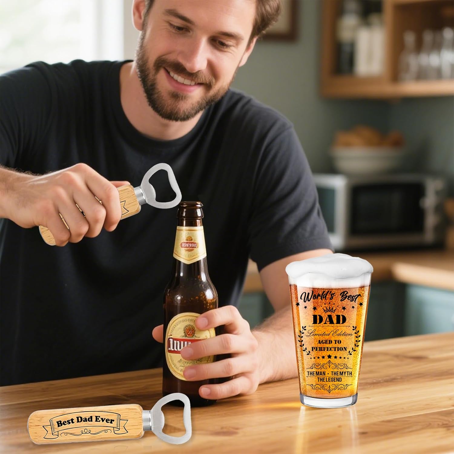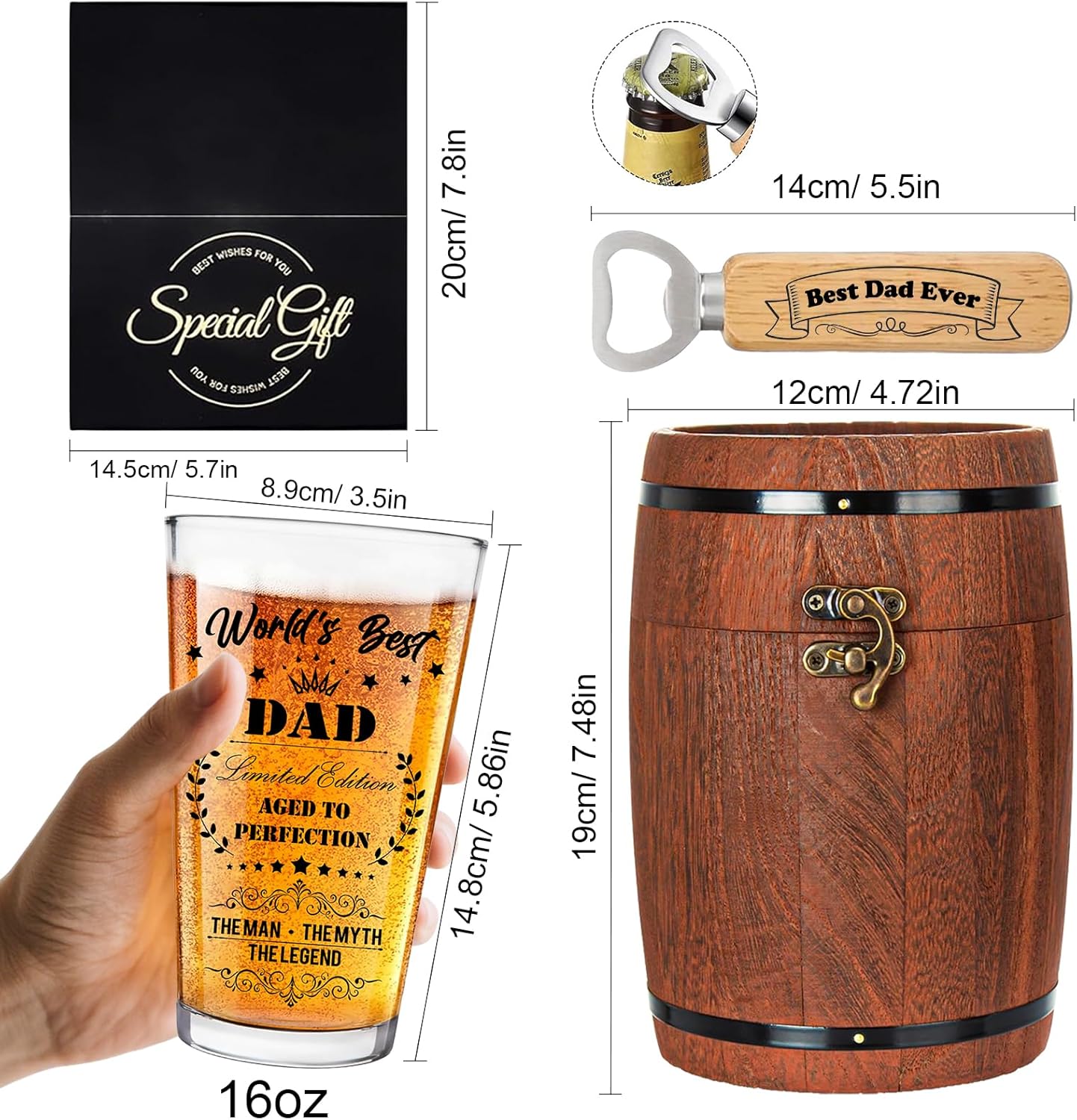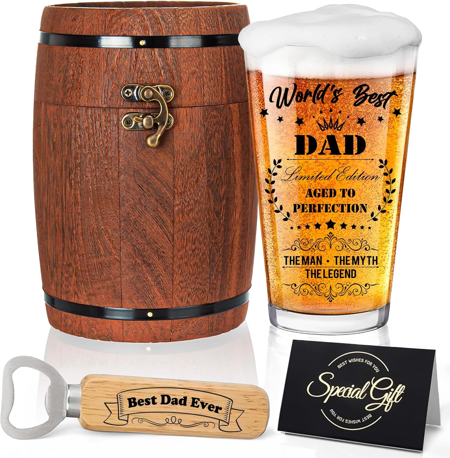 Premium Quality and Functional Components:The beer glass is made of high – quality materials, ensuring durability. The wooden barrel box not only serves as a stylish storage but also adds a rustic charm. The bottle opener, engraved with “Best Dad Ever”, is practical and a great addition. The greeting card is perfect for adding a personal touch.