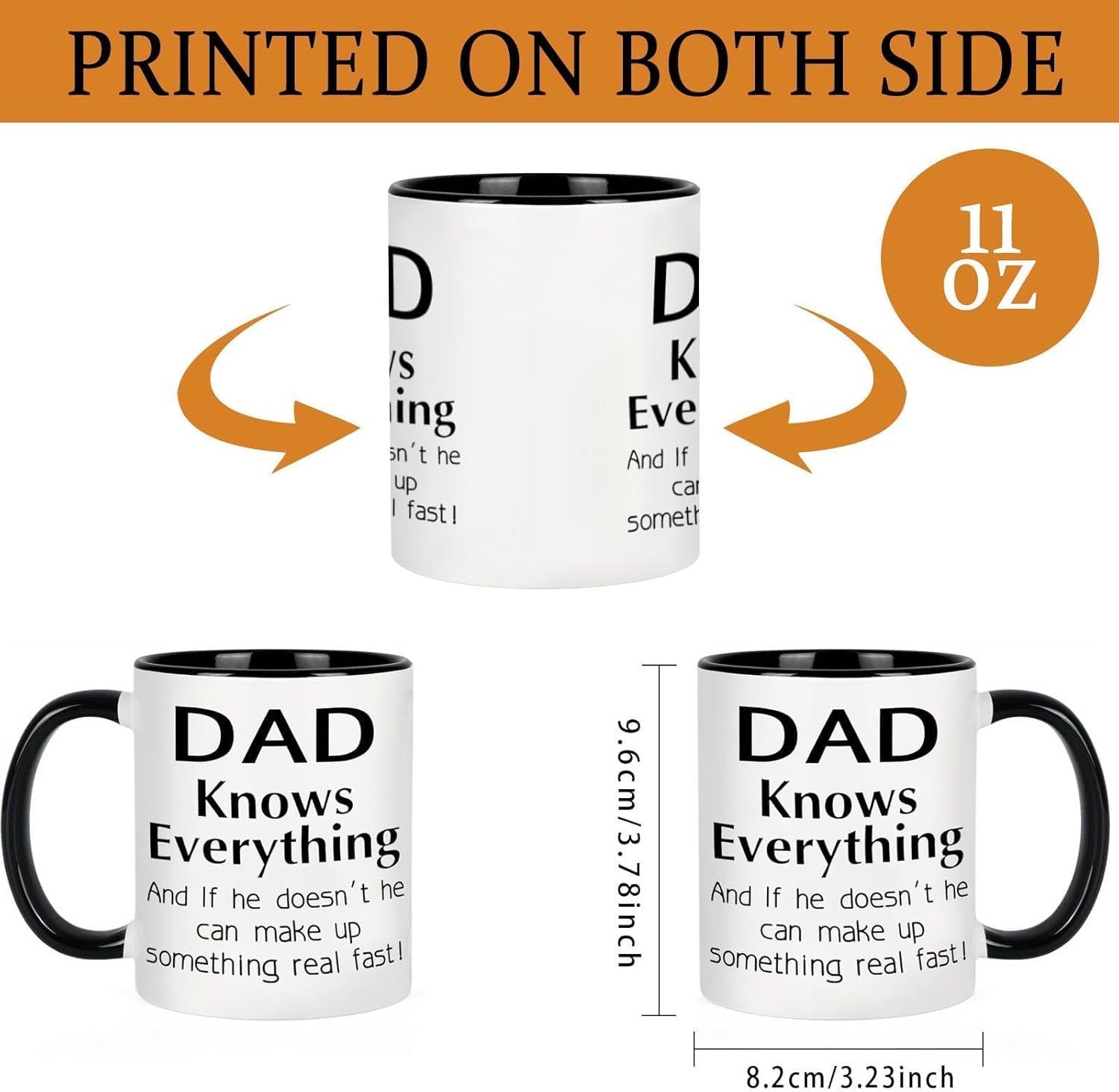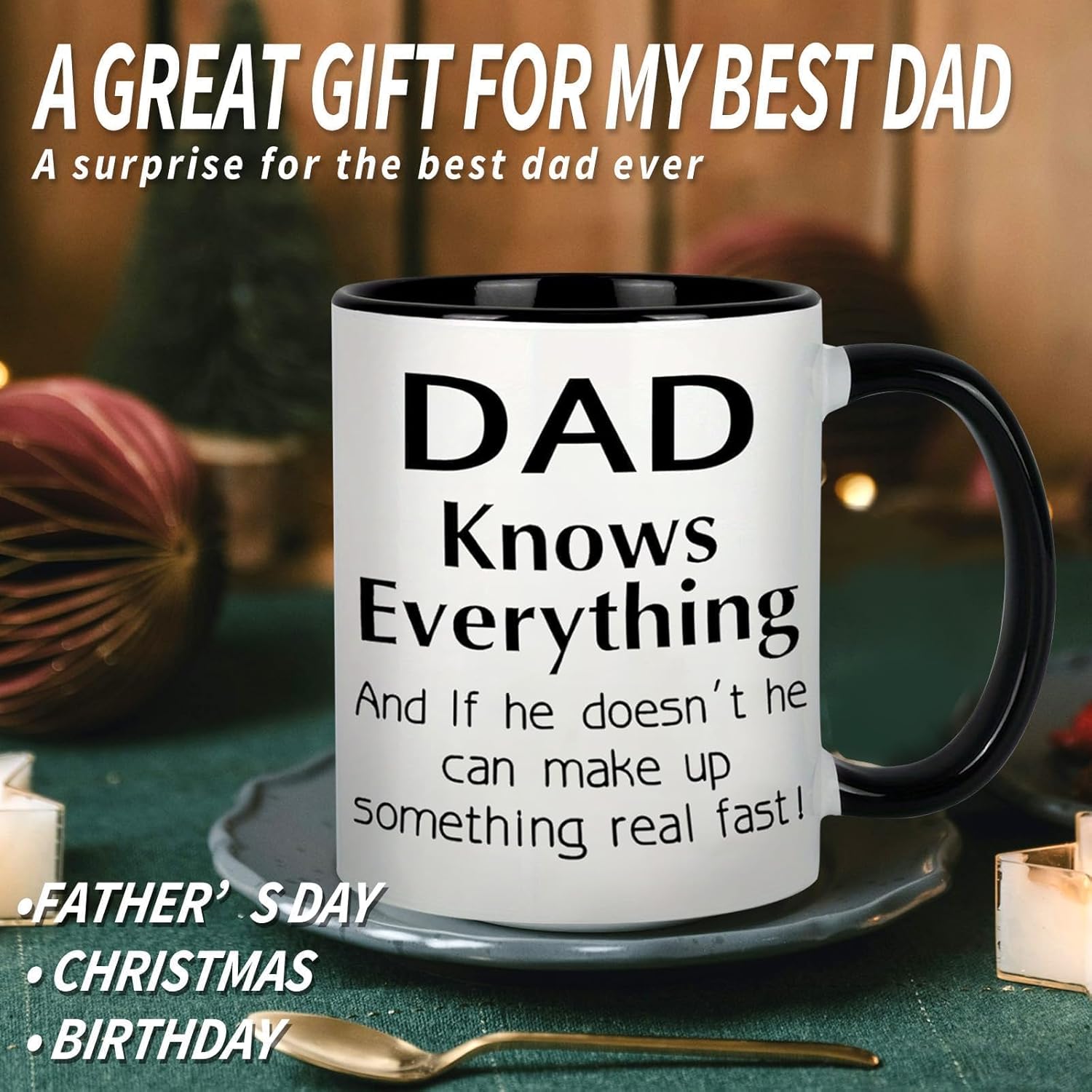 【A Heartfelt Dad Birthday Gift】 “DAD KNOWS EVERYTHING” mug is a tribute to your father, expressing your love and admiration. Show him that he is the best dad in the world with this meaningful birthday present for dad that speaks volumes.