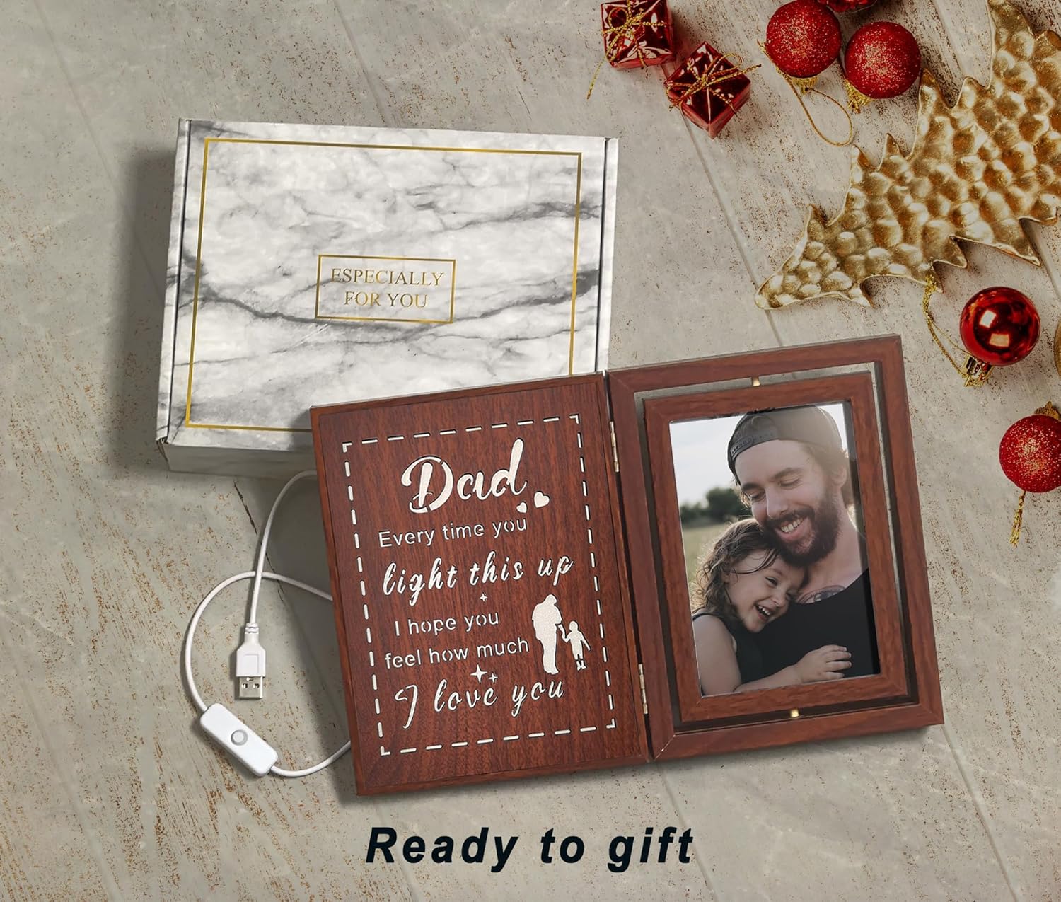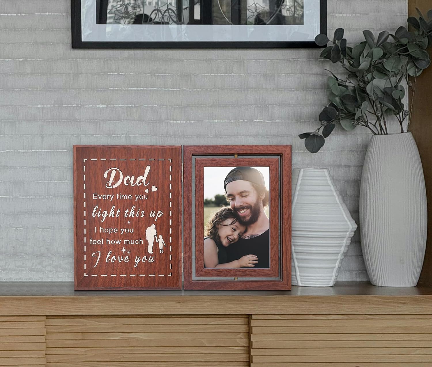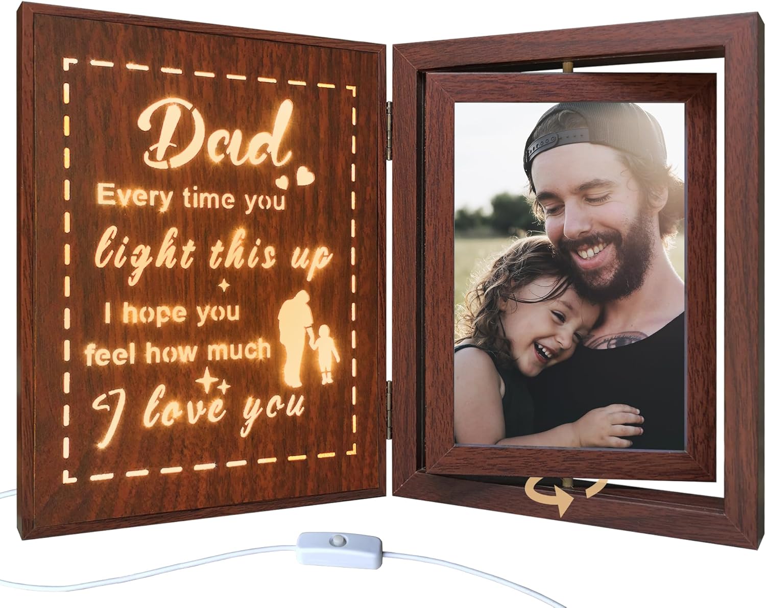 Dad Light Up Photo Frame Gifts from Daughter Son, Wooden Rotating Photo Frame for Dad Birthday Christmas, Unique Sentimental Gifts for Father, Holds 2 4×6 Photos