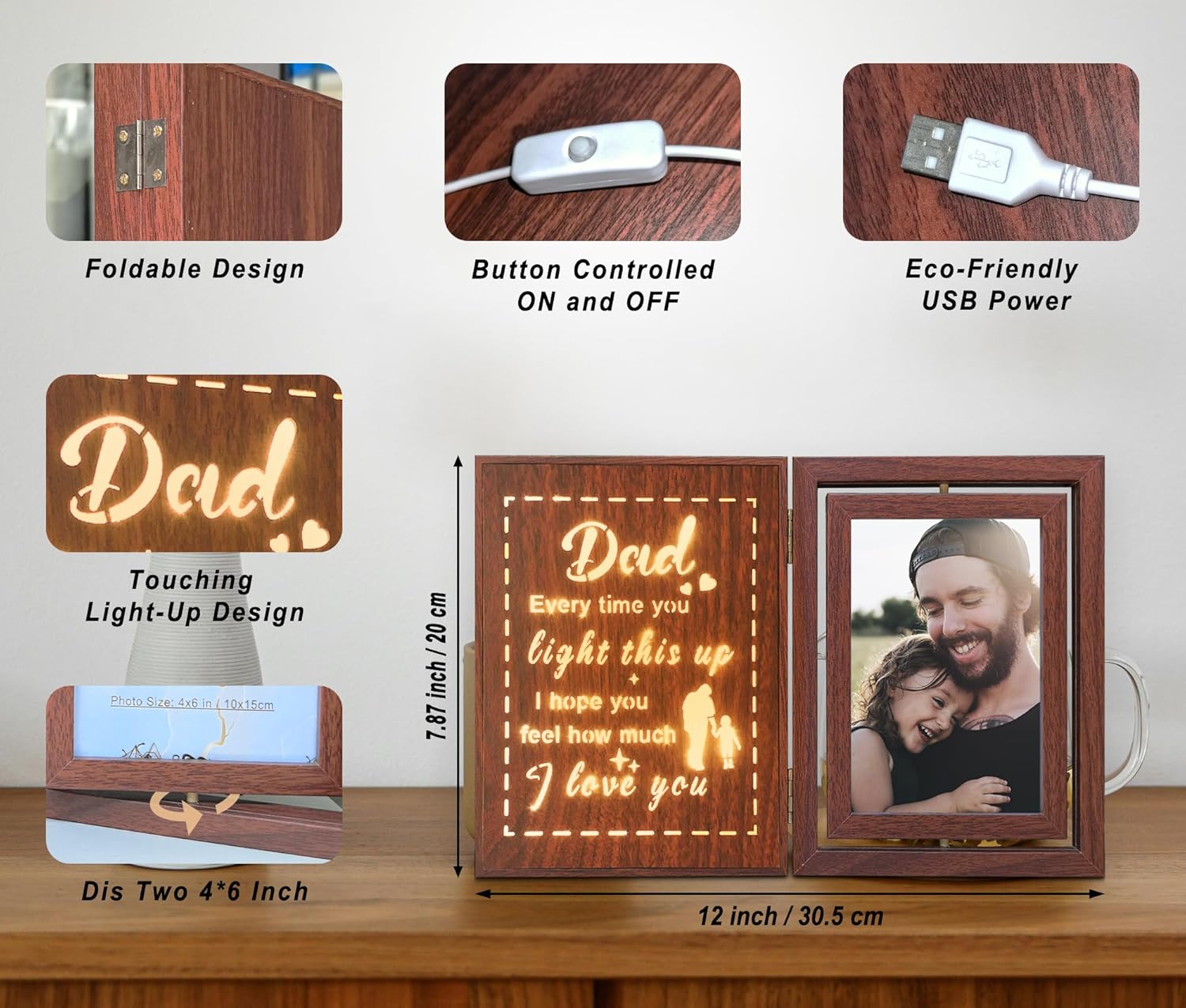Show Dad how much he means to you with this light-up wooden photo frame — a warm, sentimental gift that speaks from the heart