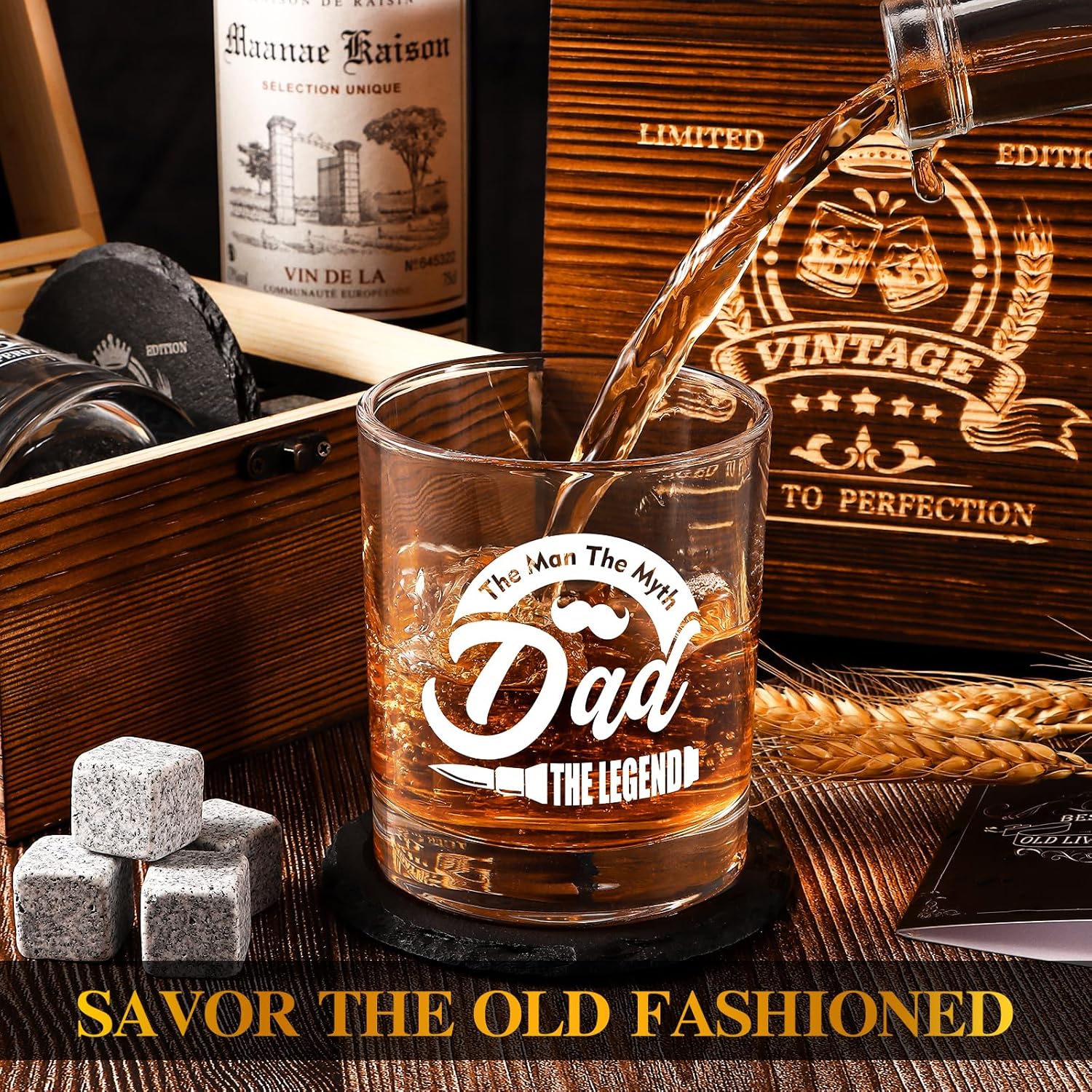 【 Wooden Gift Box 】 Whiskey gifts packaged well by foam padded inside, wood box will make your gift out of the ordinary on fathers day, dad birthday, baby shower party, christmas,etc. When your dad open this gift box and sees this whiskey glass set with “best dad”, just picture how affected and delighted they will be.