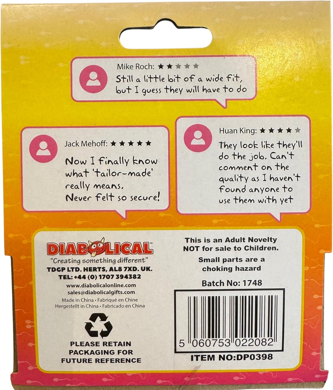 These joke condoms are 2 cm in diameter, so those with a tiny todger have no need to worry! They’re one of the funniest prank gifts you can find a man!
