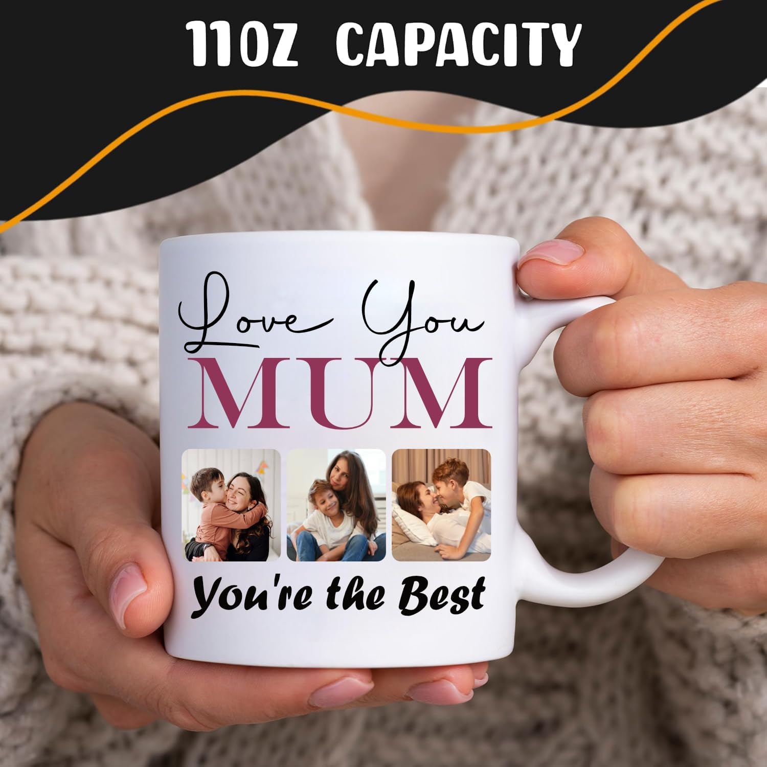 Personalised Family Mug – Gifts for Mum, – Mothers Day, Birthday Gifts Presents for Mum Mummy Mother Her from Daughter Son Mothers Day Gifts – 11oz Ceramic White Tea Mug Custom With Photos