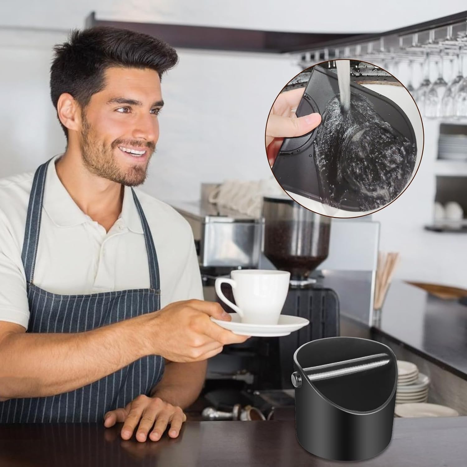 Noise-Reducing Knock Bar Design: The rubber-coated knock bar provides excellent cushioning, allowing you to quietly dispose of coffee grounds. This thoughtful design makes our coffee grounds knock box a perfect choice for any barista accessories kit. The knock bar is detachable for easy cleaning, ensuring your knock box stays hygienic.