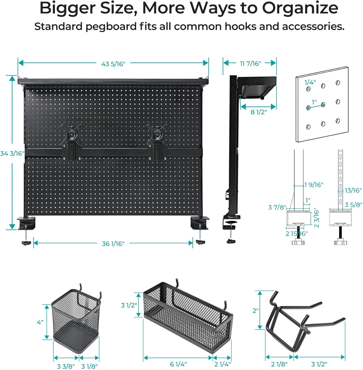 💯【Innovative Clamp-On Desk Pegboard】 Expand your workspace and keep your items off your desk with our clamp-on pegboard. Enjoy the robust functionality of a wall organiser without the hassle of drilling! This desk pegboard fits most computer, standing, or gaming desks (up to 40mm thick), providing flexible room accessories and storage right where you work.