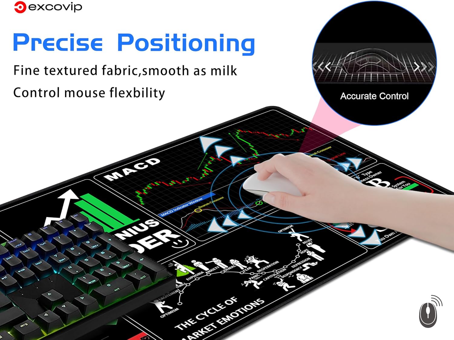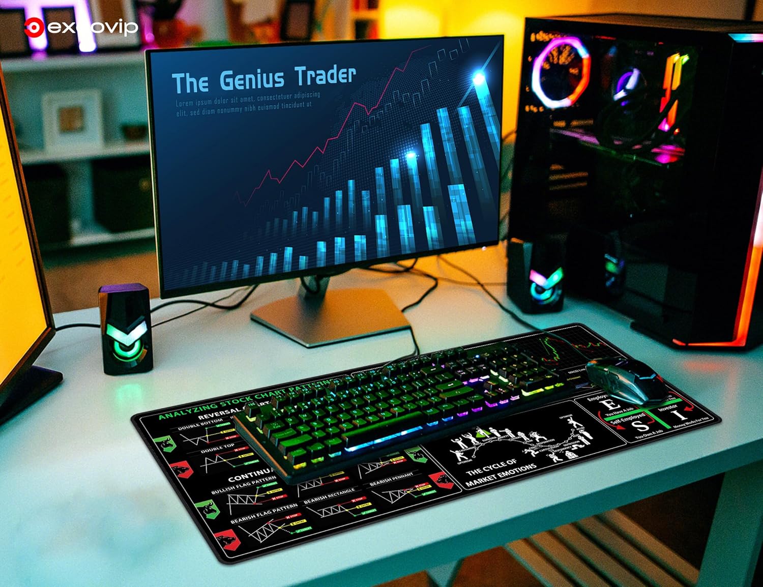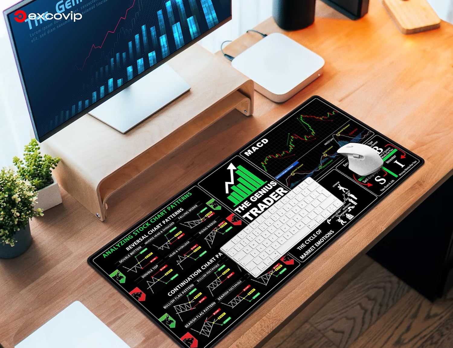 The mouse pad is designed for stock market investing, including day trading for bitcoin and forex.